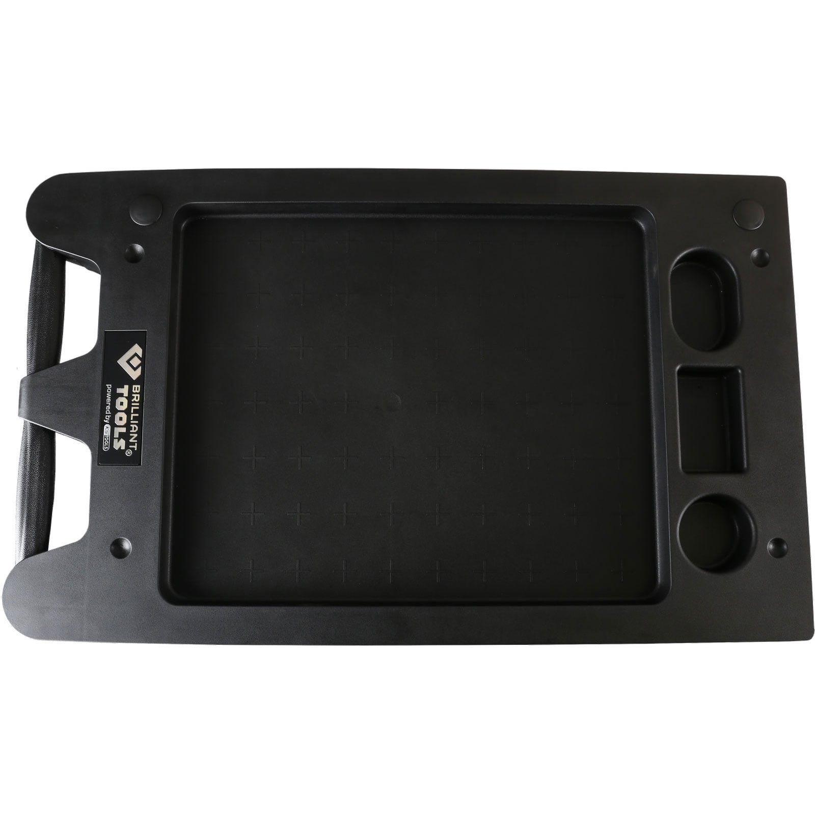 Der hochwertig pulverbeschichtete BRILLIANT TOOLS Profi Werkstattwagen BT153207 ist immer dort, wo er gerade gebraucht wird! Lästiges hin und her laufen gehört der Vergangenheit an! Mithilfe der ergonomischen in die Kunststoffablage integrierten Schiebegriffe lässt er sich ziemlich leicht durch die Werkstatt manövrieren und dabei schützt der Kantenschutz an den Ecken bei Kollisionen. Dank seiner 2 Feststellbremsen an den Lenkrollen bleibt er sicher am Zielort stehen.