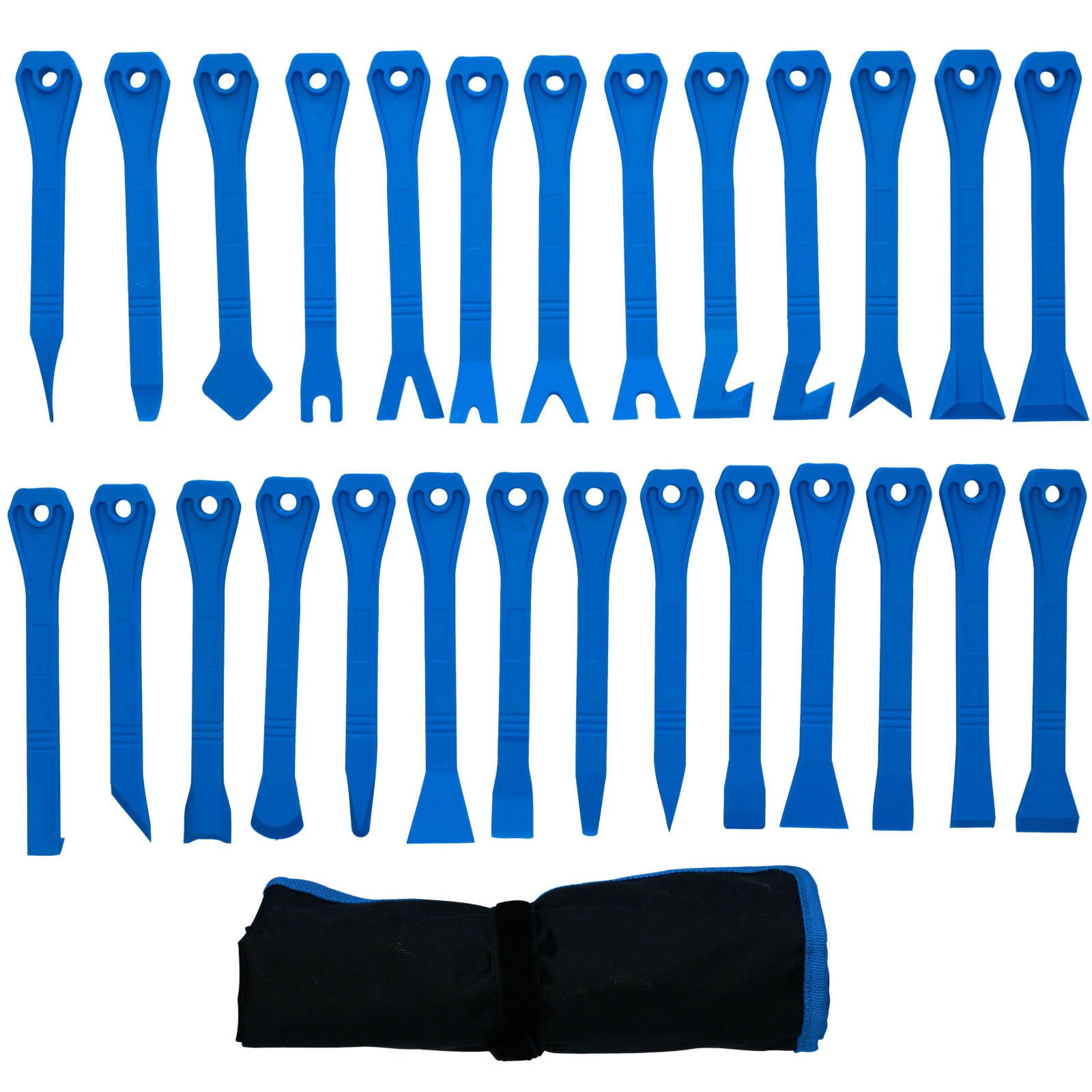 Der BRILLIANT TOOLS Zierleistenkeile -Satz BT511055 ist ein praktischer Helfer bei der Demontage von Zierleisten, Gummidichtungen, Türverkleidung, Schaltern, etc. Durch die verschiedenen Formen der 27 Keile sind diese auch an sehr schwer zugänglichen Stellen einsetzbar. Alle Werkzeuge sind aus glasfaserverstärktem Kunststoff. Dies sorgt für Stabilität und Flexibilität.