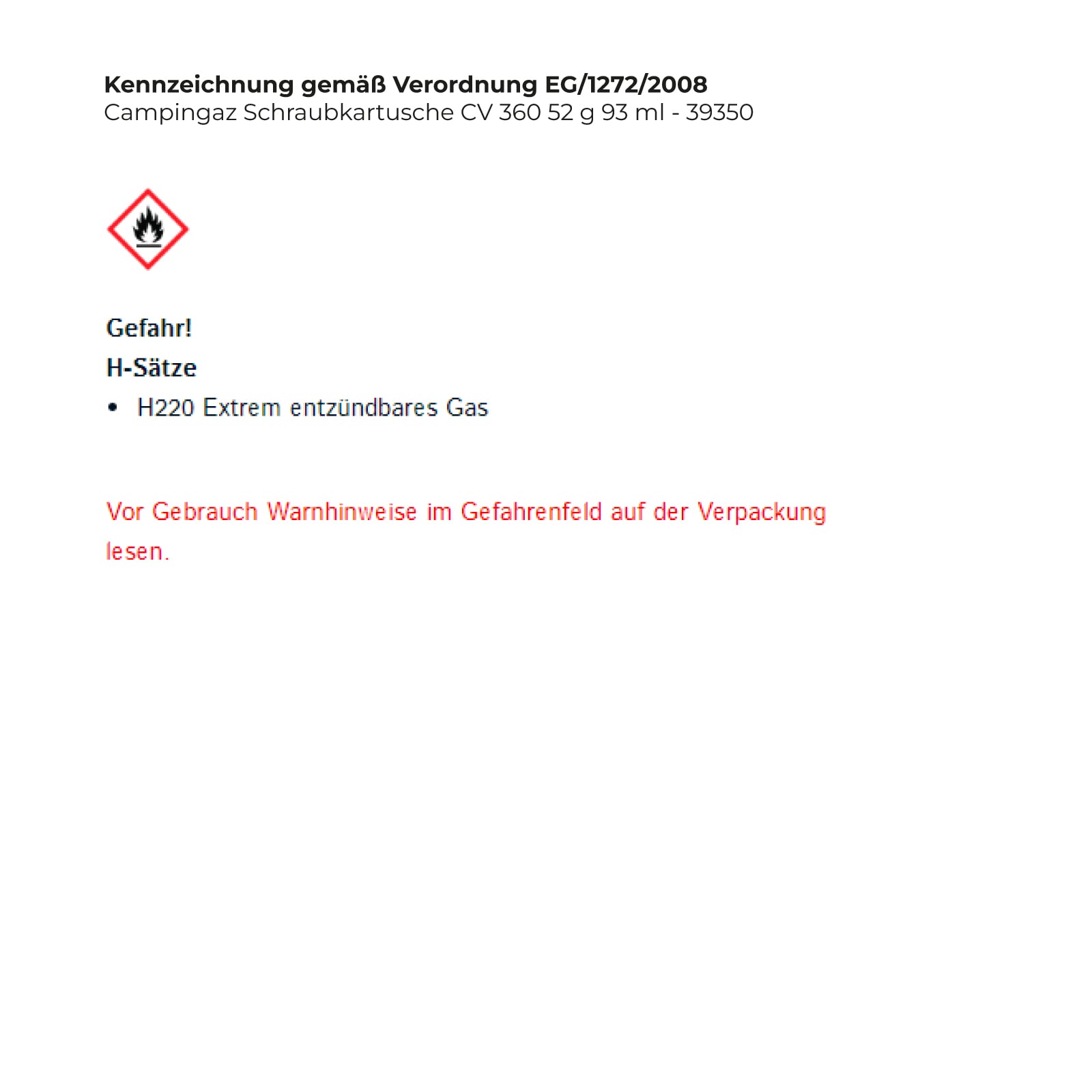 Merkmale passend für: Mikro-Feinlötbrenner Spotflam Gewicht: 52 g Inhalt: 93 ml Marke: CAMPINGAZ