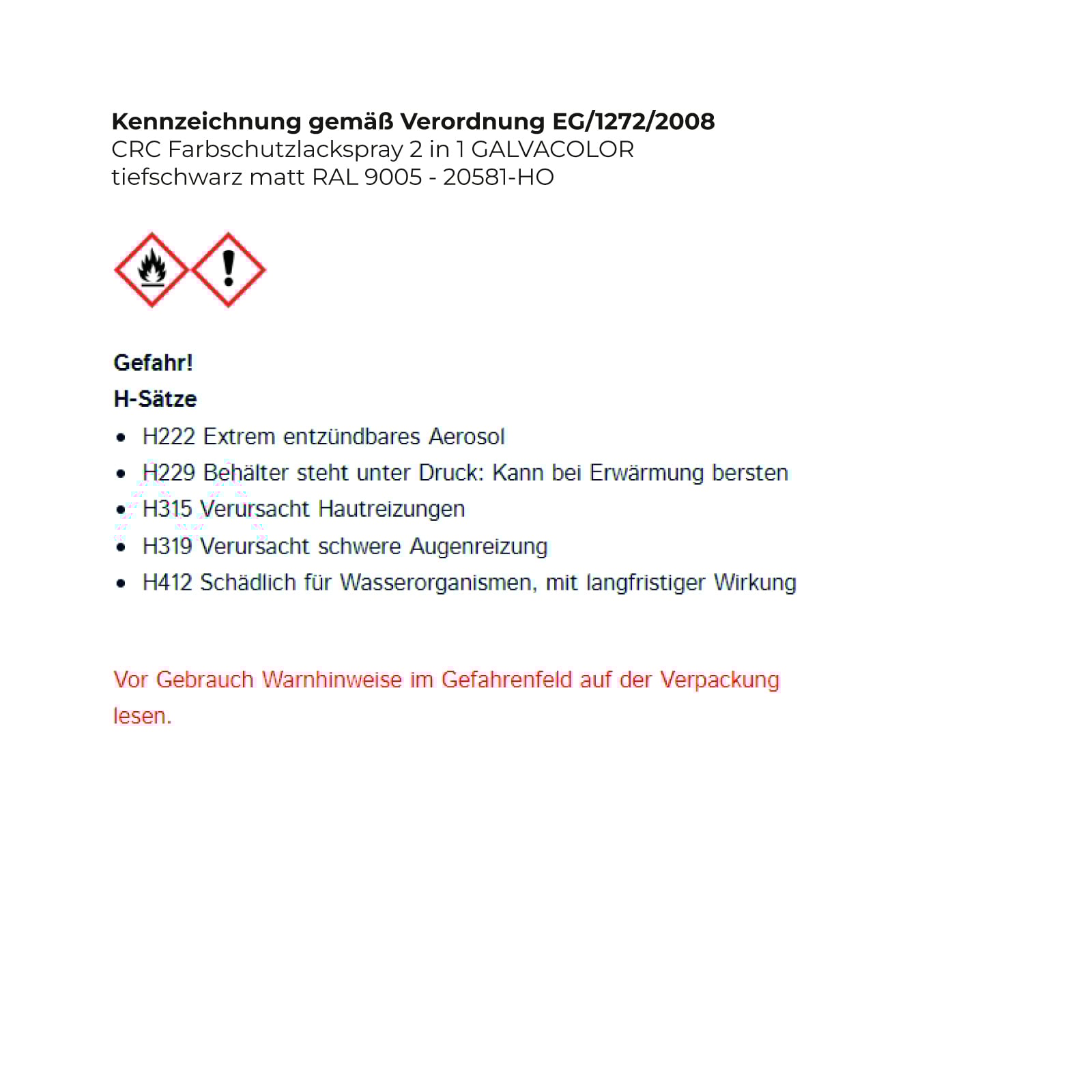 - CRC Farbschutzlackspray 2 in 1 GALVACOLOR tiefschwarz matt RAL 9005