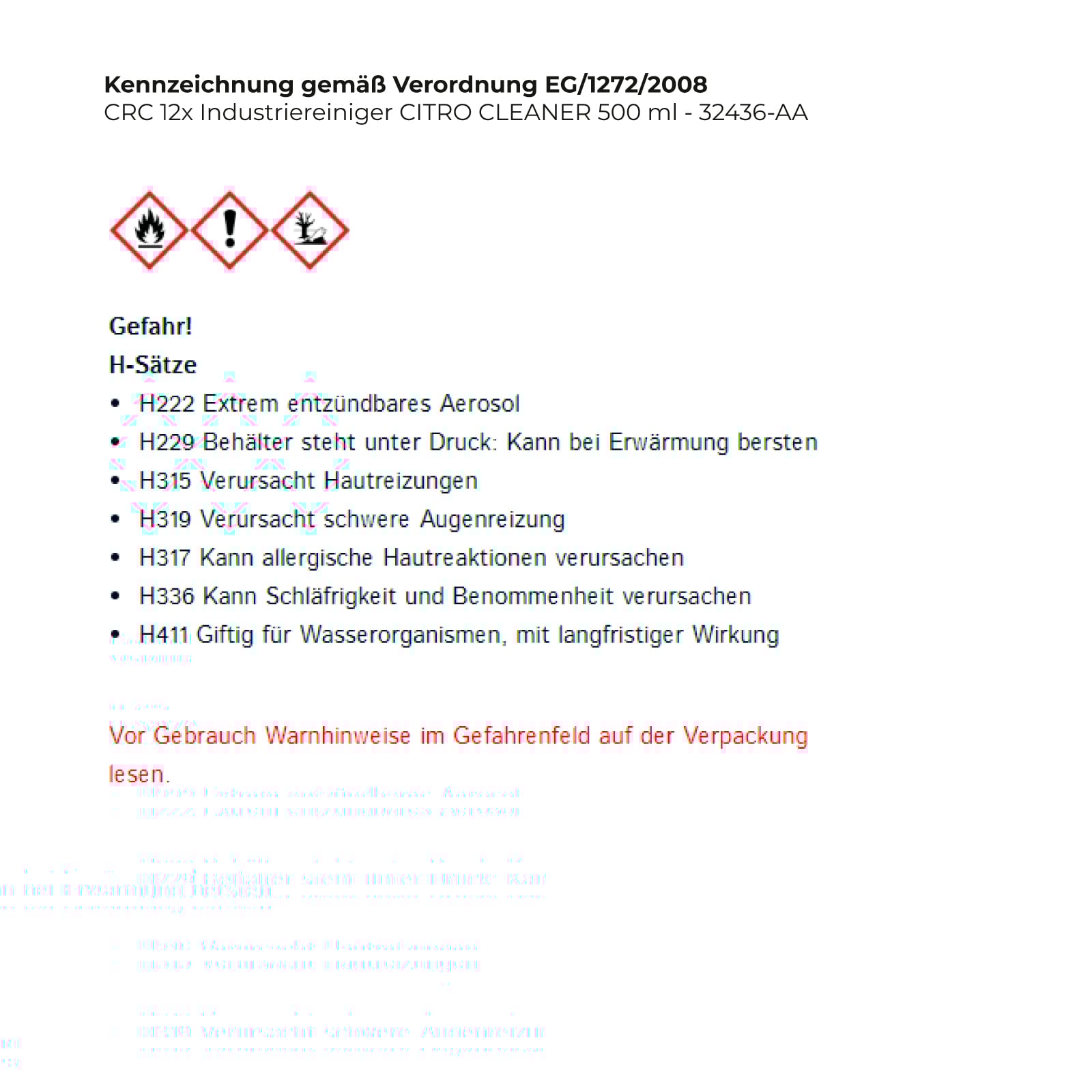 - H411 Giftig für Wasserorganismen, mit langfristiger Wirkung