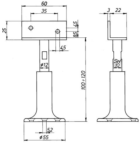 "DENI Trennwandstütze B.60mm H.100-120mm Alu.F1/naturf.höhenv - 5247 0120 01"