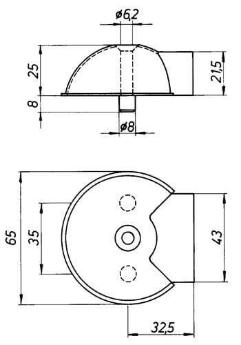 - 1x DENI Türpuffer 3847 D.65mm H.25mm VA ma Dübelmontage
