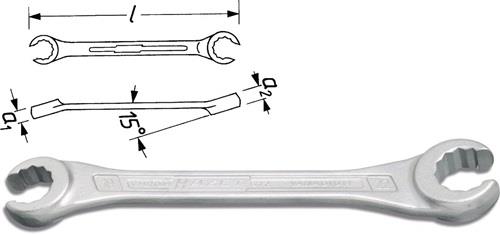 für Rohrverschraubungen, Überwurfmuttern und -schrauben · Köpfe um 15° abgewinkelt · Maulöffnung 15° geschlitzt · verchromt · 6kant DIN 3118 Weitere technische Eigenschaften: · Oberfläche: verchromt