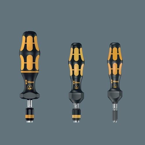 ISO 6789 · Wera Drehmomentschraubendreher · sicherer Schutz vor elektrostatischer Energie und damit verbundenen Schäden · variable Drehmomenteinstellung bei höchster Genauigkeit · einfache Einstellung des benötigten Drehmomentwertes ohne Sonderwerkzeug · gute Ablesbarkeit des Skalenwerts · Rapidaptor-Schnellwechseltechnologie für blitzschnellen Bit-Wechsel · unbegrenztes Lösemoment zum Lösen festsitzender Schrauben · mehrkomponentiger Kraftform-Griff mit Hart- und Weichzonen für hohe Arbeitsgeschwindigkeiten und zur Schonung der Handfläche · geeignet für Bits mit 1/4″-Außensechskantantrieb nach DIN ISO 1173-C 6,3 und E 6,3 (ISO 1173) Weitere technische Eigenschaften: · prüfpflichtig: ja · Abrollschutz: ja · Aufnahmegröße: 1/4"Zoll · Bit-Handhalter mit Rapidaptor-Schnellwechselfutter: ja · Einstellbar: ja · ESD Werkzeuge: ja · Grifflänge: 105mm · Länge Drehmomentschlüssel (in Zoll): 6"Zoll · Torque: ja