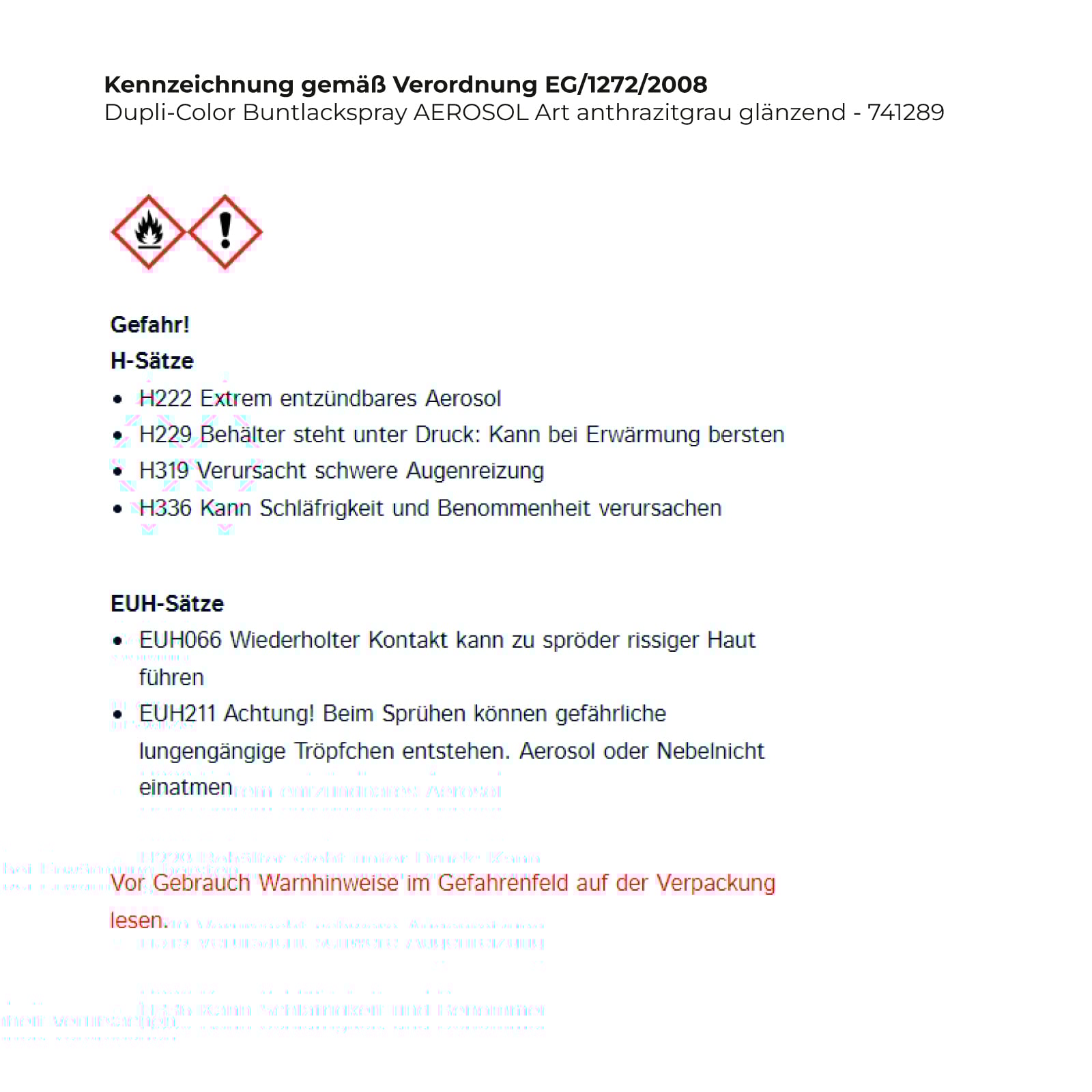 - Dupli-Color Buntlackspray AEROSOL Art anthrazitgrau glänzend