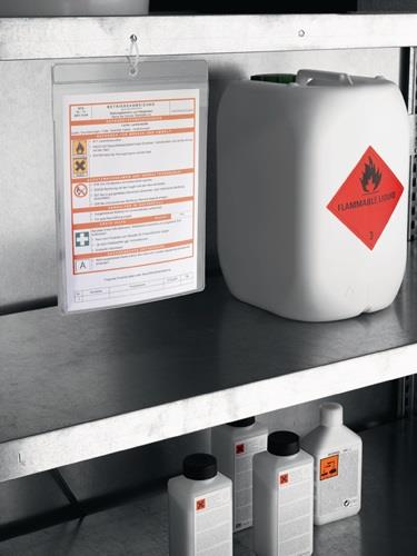 einsetzbar z. B. für Sicherheitshinweise, Telefonverzeichnisse, Reparaturzettel usw. aus transparenter Hartfolie mit verstärkter Lochung zum Aufhängen VE : 10 Stück Farbe: transparent Format: DIN A4 Marke: DURABLE Ausführung: mit Öse Material: PP-Folie, dokumentenecht