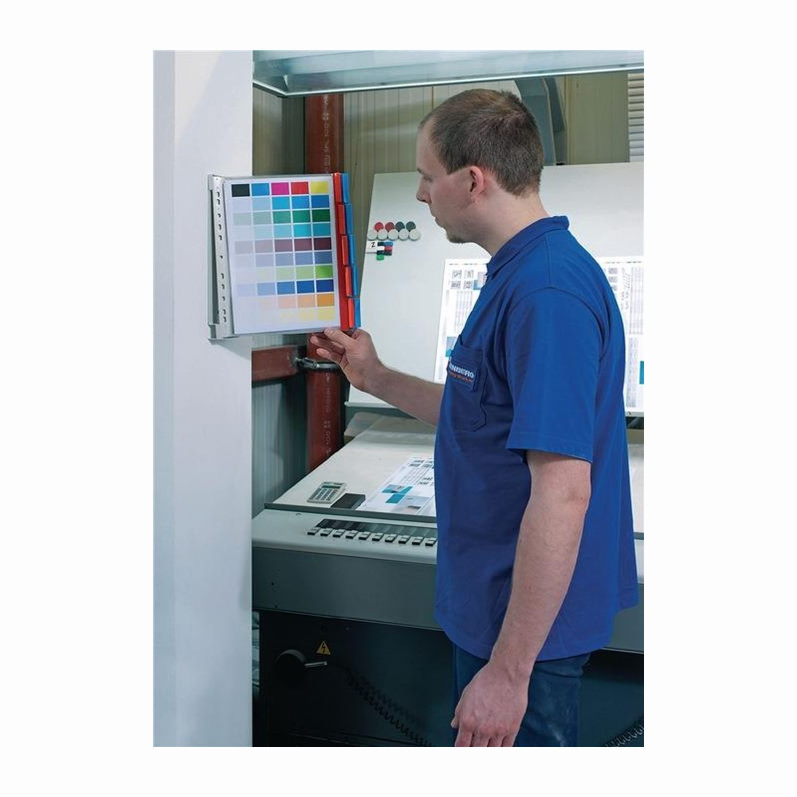 Komplett-Set mit Hartfolie Metall-Wandhalter zur Montage an Wänden oder Lochwänden (inkl. Montagematerial) mit 10 Sichttafeln (je 5 in rot und blau) inkl. Kunststoffreiter und Beschriftungsetiketten Aneinanderreihen der Wandhalter in beliebiger Anzahl möglich Anzahl Sichttafeln: 10 Farbe: rot/blau Marke: DURABLE Ausführung: DIN A4 aus Hartfolie Material: Metall