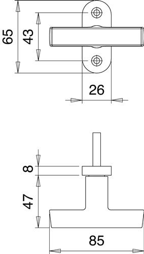 - 1x edi Fenstergriff 1511/0000 Alu.F2/neusilberfarbig 35mm Kreuzgriff