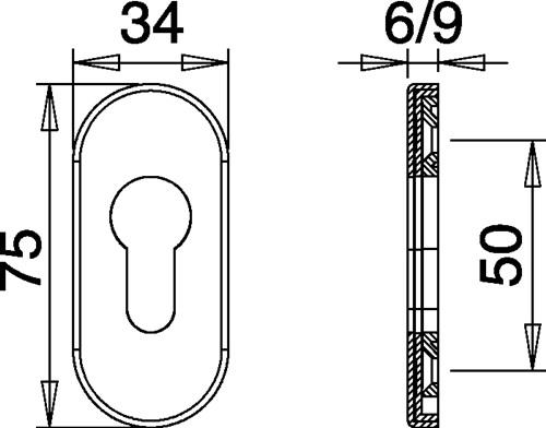 - 1x edi Feuerschutzcliprosette 0813/6 VA EST Ovalrosette Profiltür