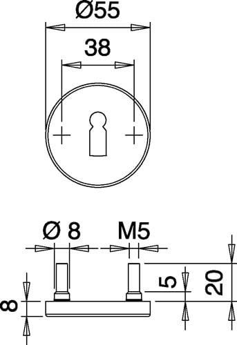 - 1x edi Schlüsselrosetten-Paar 055 VA F00 Schildst.8mm BB rd