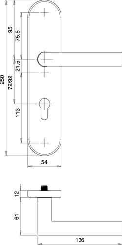 - Drückertyp und -stärke: 108 mit Ø 22 mm