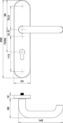 - Knopfausführung bei Wechselgarnitur: Modell …/0272 und …/0292 K2 (gekröpft), bzw. Modell …/0772 und …/0792 K7 (gerade)