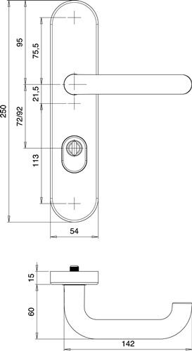 - Knopfausführung bei Wechselgarnitur: Modell …/0272 und …/0292 K2 (gekröpft), bzw. Modell …/0772 und …/0792 K7 (gerade)