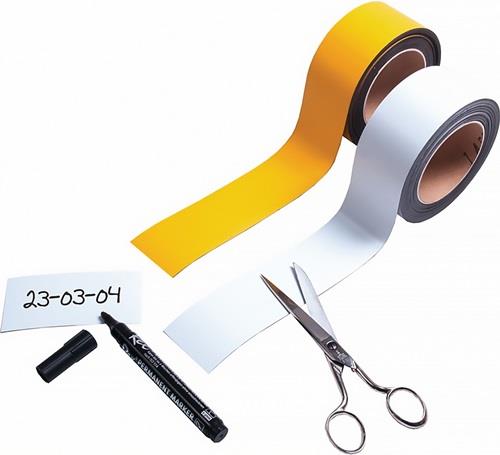 zur Kennzeichnung von Regalen, Behältern usw. magnetisierte Bänder beschriftbar und individuell zuschneidbar Bandstärke 0,9 mm Bandlänge 10 m Lieferung in Rollen