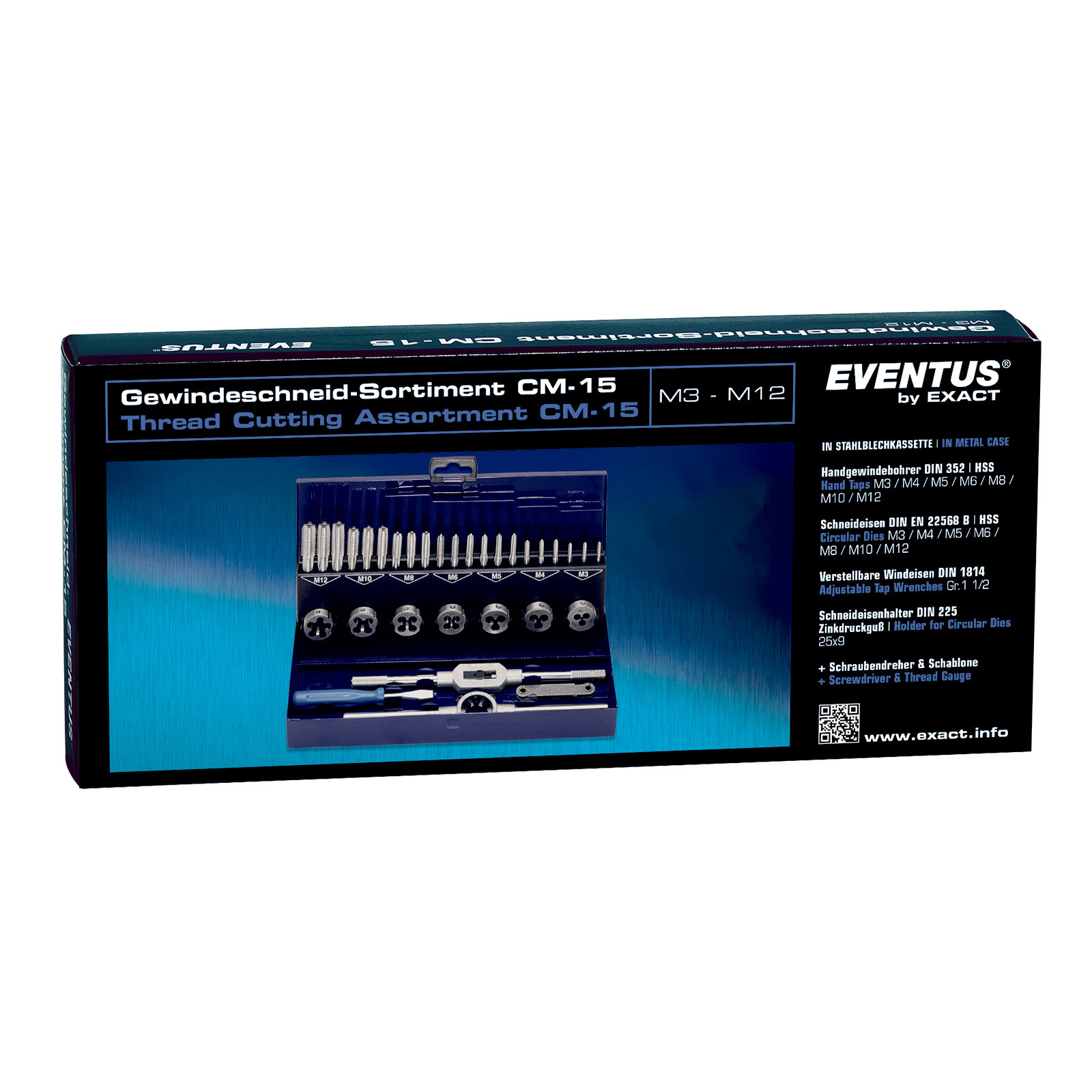 EVENTUS by EXACT Gewindeschneidsortiment CM15 - 32-tlg. in robuster Stahlkassette