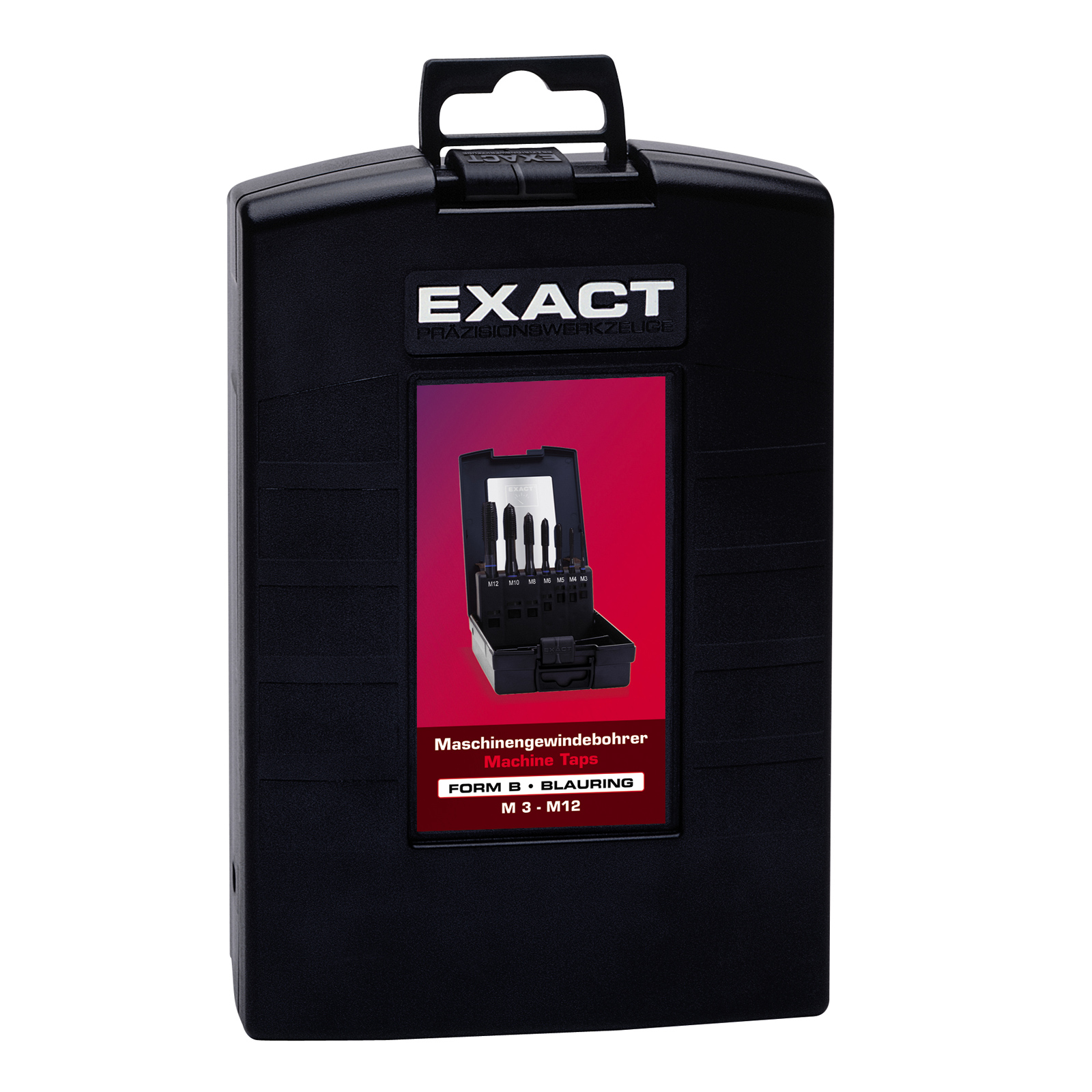 EXACT Maschinengewindebohrer Satz, DIN371/DIN376, HSS-E, vaporisiert, Form B Durchgangsloch, BLAURING M3 - M4 - M5 - M6 - M8 - M10 - M12