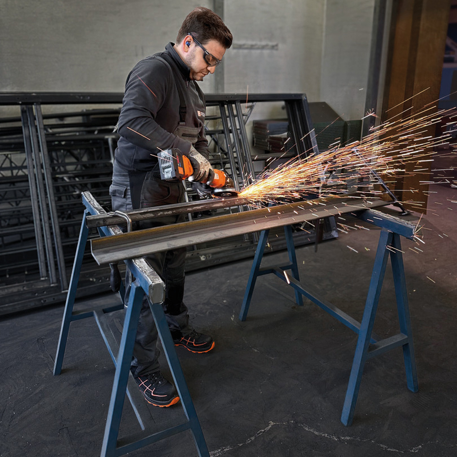 - Staubresistenter und leistungsstarker Akku-Winkelschleifer mit Totmannschalter, für effektive Trenn-, Schleif- und Entgratarbeiten im Montageeinsatz.