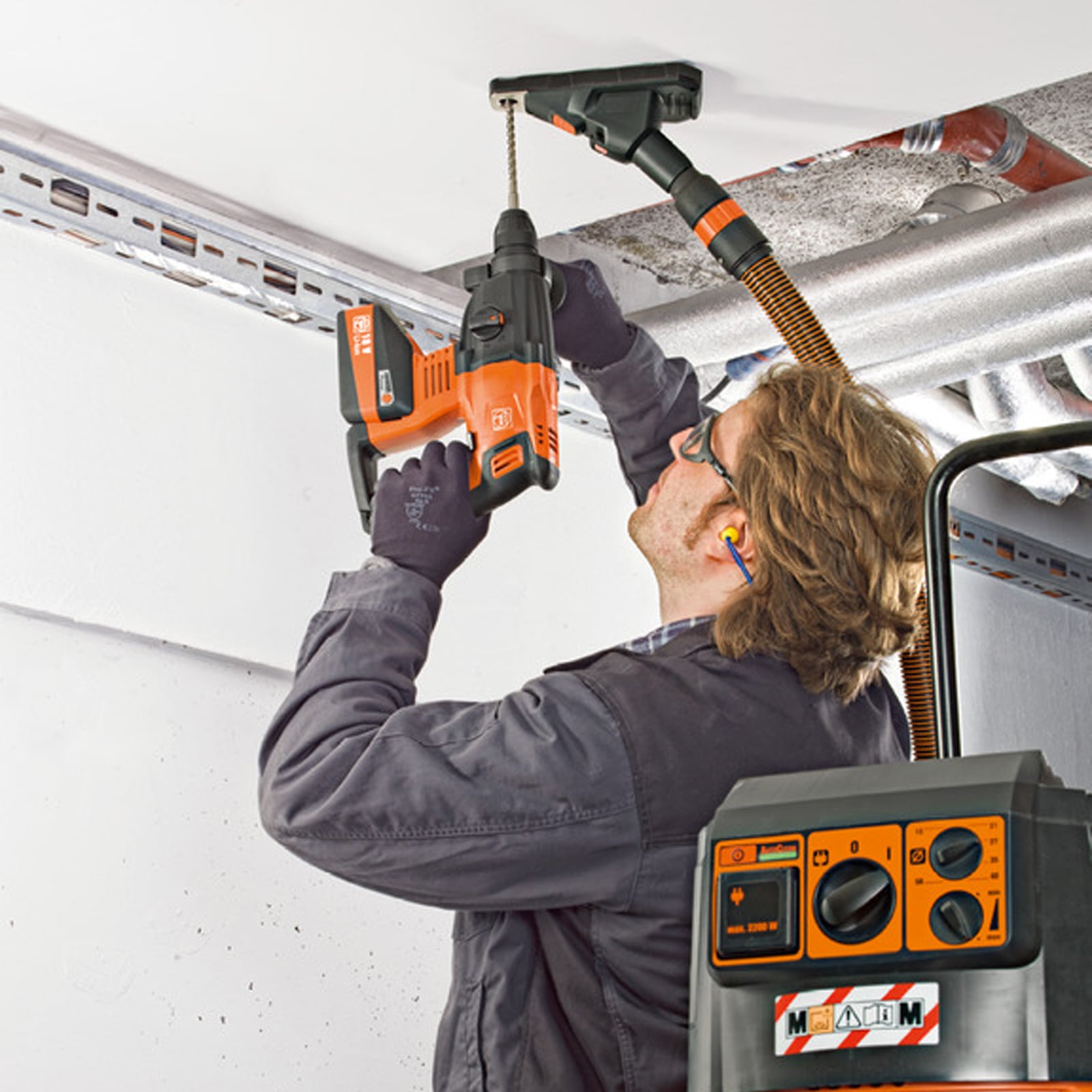 - Staubarmes Bohren auf allen gängigen Wand- und Deckenflächen