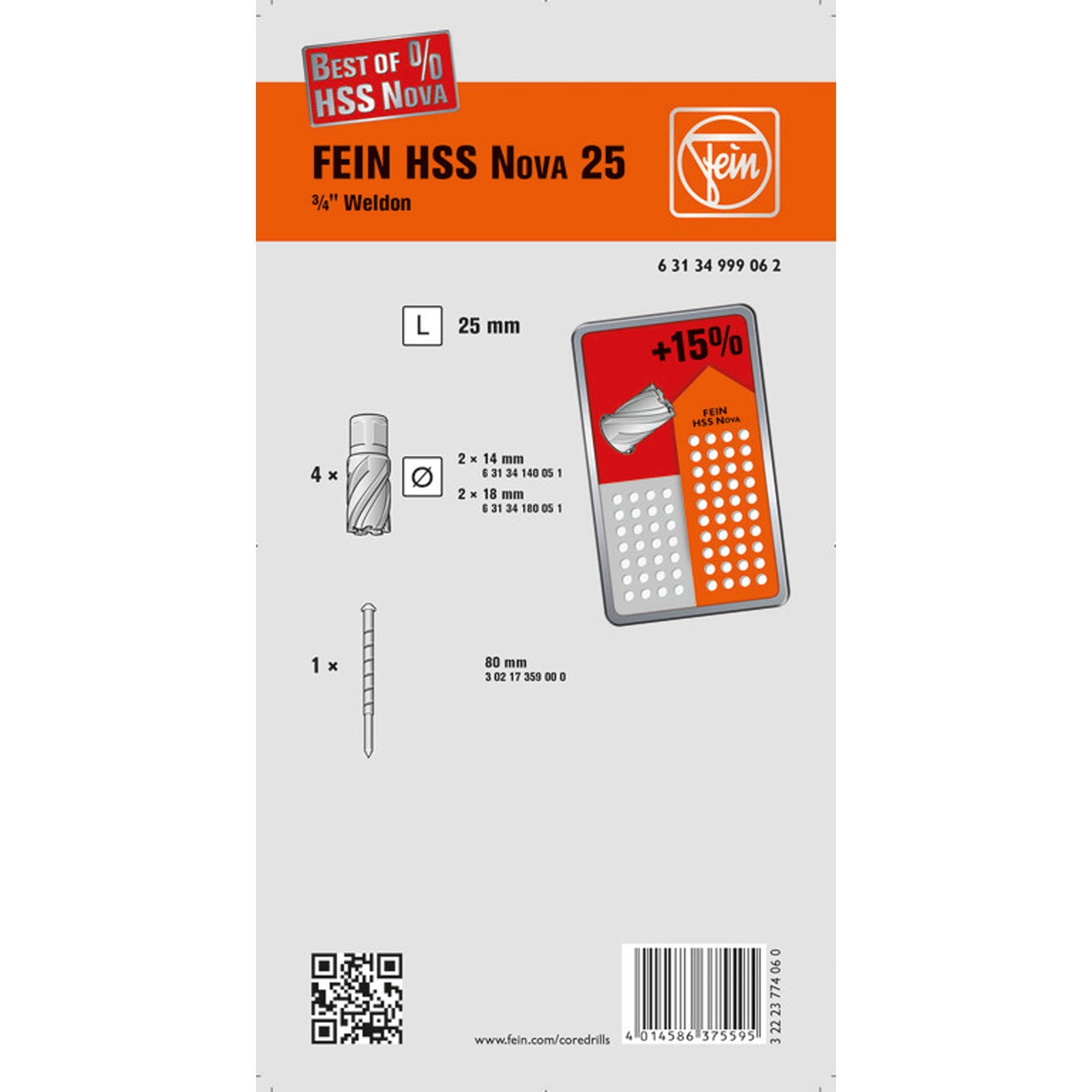 "Fein Zubehörset HSS NOVA 25 W Best of Kernbohrer 3/4 in Weldon - 63134999062"