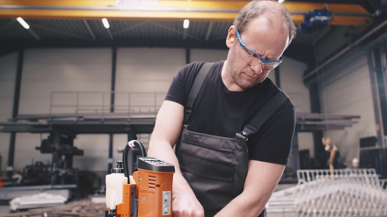 - Permanent-Magnet für sehr sicheres Arbeiten in der Höhe sowie schwenkbar gelagerter Motorkabel-Schutzschlauch und hohe Verarbeitungsqualität für den harten Einsatz.