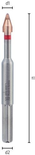 Einsatzbereich: Für extrem harte Steinzeugfliesen bis Mohs-/Ritz-Härte 9 sowie Glas und Porzellan · keine Kühlung erforderlich · nicht geeignet zum Schlagbohren · Schneidenanzahl: 2 · Werksnorm Weitere technische Eigenschaften: · d2 Ø Schaft: 10mm · Einsatzbereich: Für extrem harte Steinzeugfliesen bis Mohs-/Ritz-Härte 9 sowie Glas und Porzellan. Keine Kühlung erforderlich. Nicht geeignet zum Schlagbohren. · Schaftausführung: WERKS NORM · Z Schneidenanzahl: 2