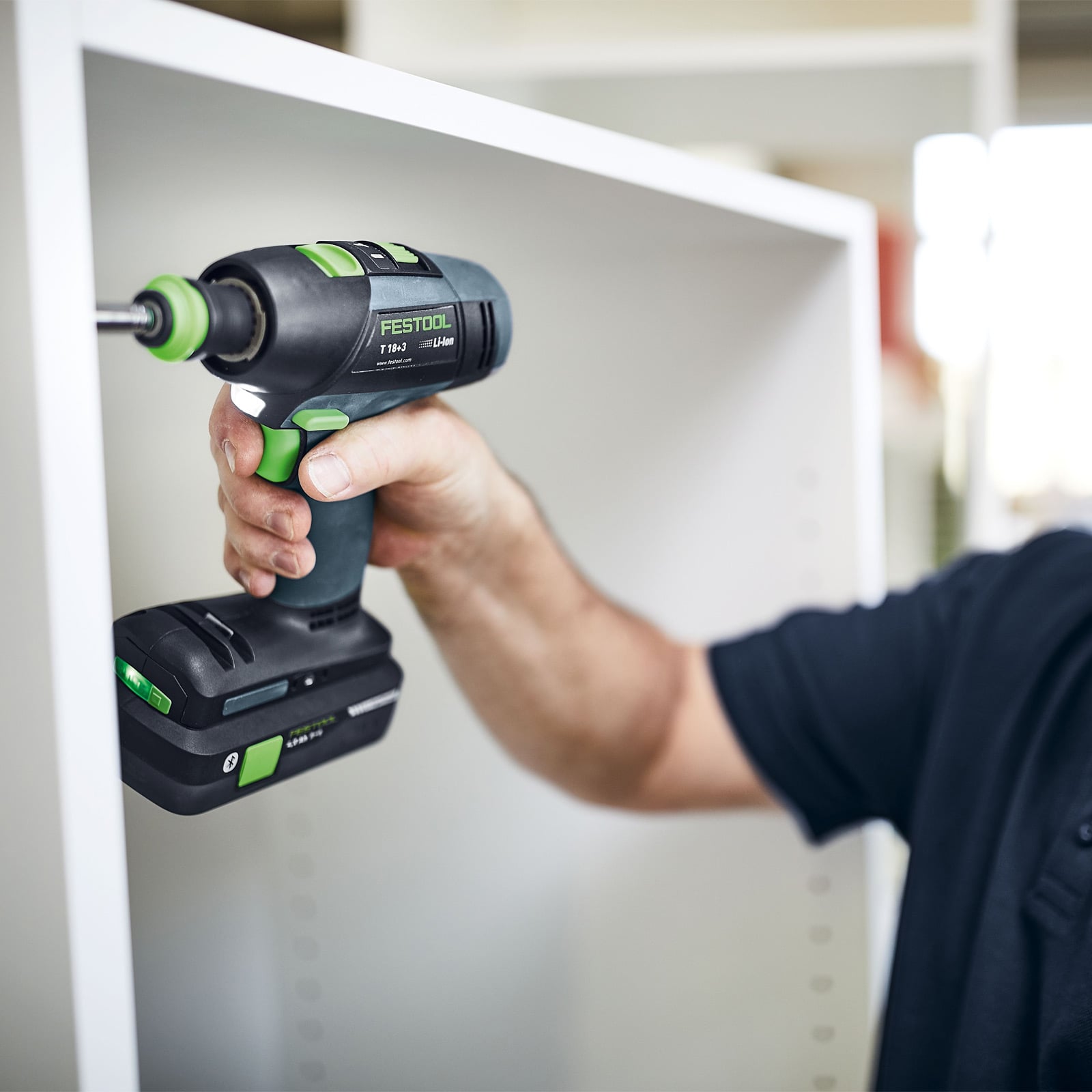 - Für volle Flexibilität beim Bohren und Schrauben: vollelektronische Drehmomenteinstellung, CENTROTEC Schnellwechselsystem, Winkel- und Exzentervorsatz sowie Tiefenanschlag lösen jede Bohr- und Schraubanwendung. Die Kombination aus Li-HighPower Akkupack und bürstenlosem und somit wartungsfreiem EC-TEC Motor machen den Akku-Bohrschrauber T 18+3 leicht, langlebig und ausdauernd. Für einen sorglosen Alltag sind Akkuschrauber und Akkupack mit dem Festool Service rundum abgesichert. Erhältlich in T-Bauform oder – je nach individueller Vorliebe – als C 18 auch in der einzigartigen C-Bauform.