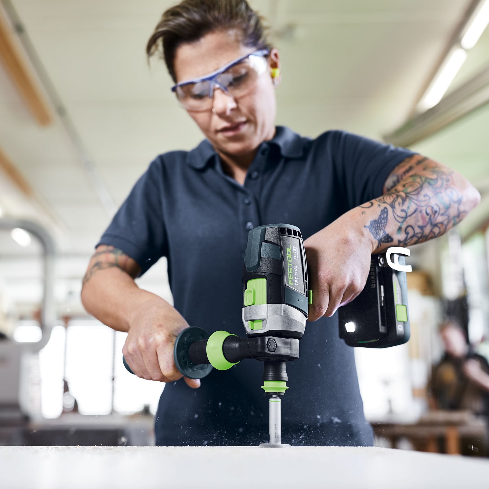 - Kraftvoll. Vielseitig. Mit 4 Gängen für jede Anwendung. Mit dem besten Schaltkonzept, das ihr je bedient habt. Ganz gleich, ob in Holz, Metall oder dank zuschaltbarem Axialschlag auch in Mauerwerk: Der TPC ist extrem hart im Nehmen und verfügt mit seinem bürstenlosen EC-TEC Motor über enorme Belastbarkeit und Ausdauer. Zahlreiche Vorsätze, kombiniert mit perfekt abgestimmtem Zubehör, machen den QUADRIVE zu einem unübertroffenen Schlagbohrschrauber für unterschiedlichste Einsatzmöglichkeiten. Und gefährliches Verdrehen des Handgelenks bei plötzlichem Blockieren des Einsatzwerkzeugs? Unser intelligenter KickbackStop minimiert das Risiko, dass es so weit kommt. Probiert ihn aus: den besten Schlagbohrschrauber, den Festool je gebaut hat!