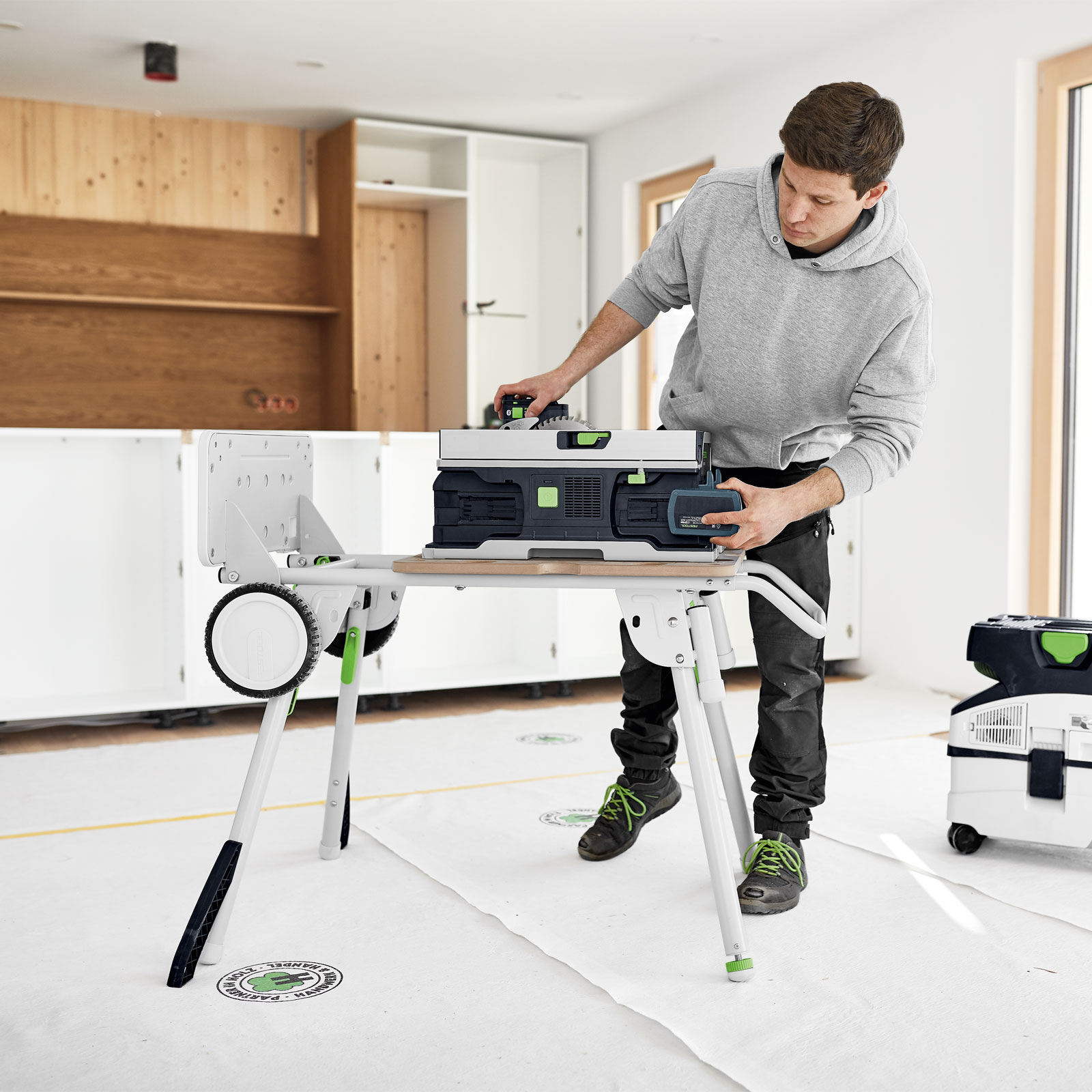 - Die Akku-Tischkreissäge CSC SYS 50 ist so kompakt, dass sie in einen Systainer passt.