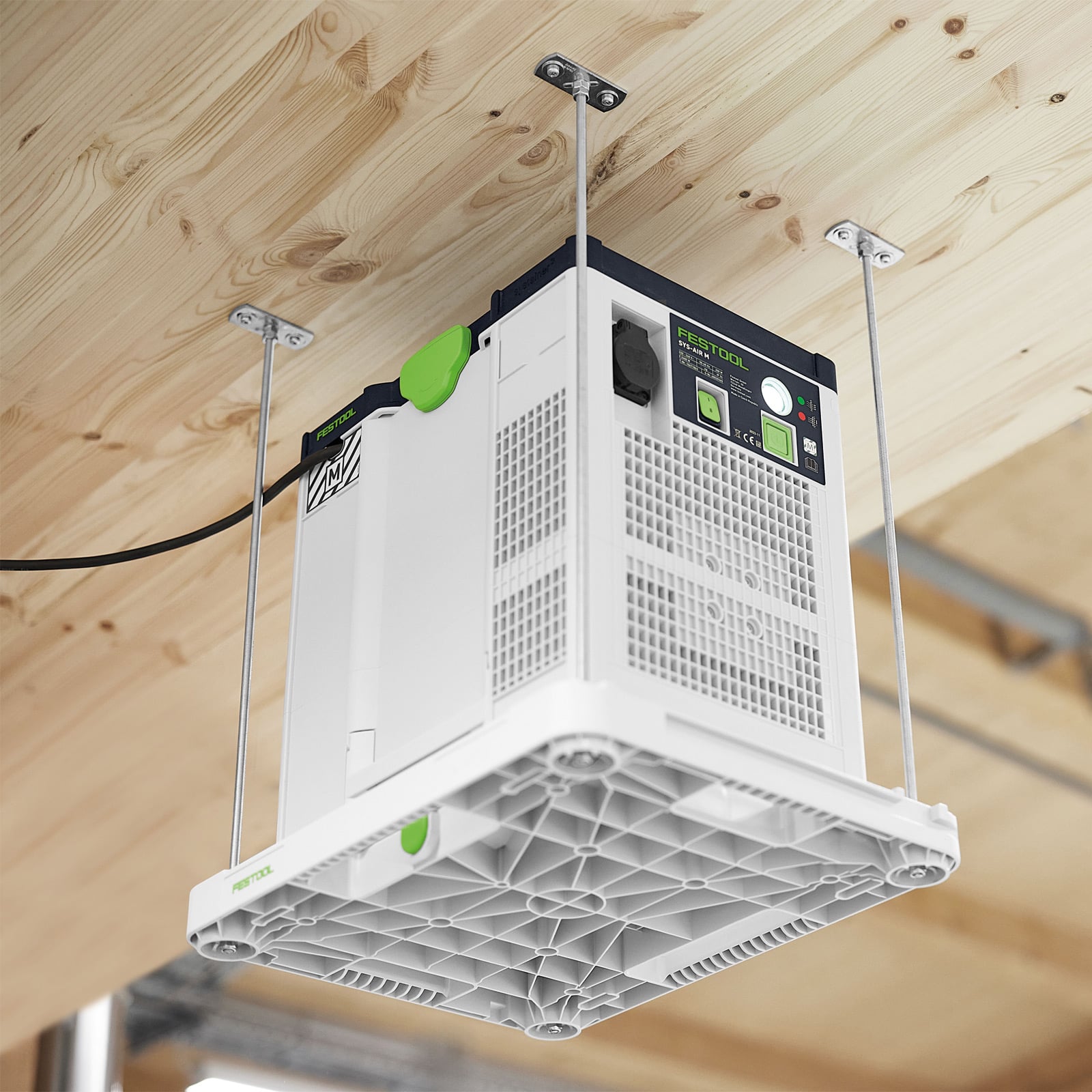 Der Luftreiniger ist durch seine kompakte Form optimal für den mobilen Einsatz geeignet. Aber auch in der Werkstatt kannst du ihn unkompliziert nutzen. Damit er dort nicht im Weg steht, lässt er sich ganz einfach an der Decke befestigen und ist dort platzsparend verstaut, aber dennoch gut zugänglich. Die praktische Konstruktion ermöglicht es zudem, Vor- und Hauptfilter zu wechseln, ohne den Luftreiniger abnehmen zu müssen. Und wenn er doch mal runter muss, geht dies dank T-LOC schnell und einfach.