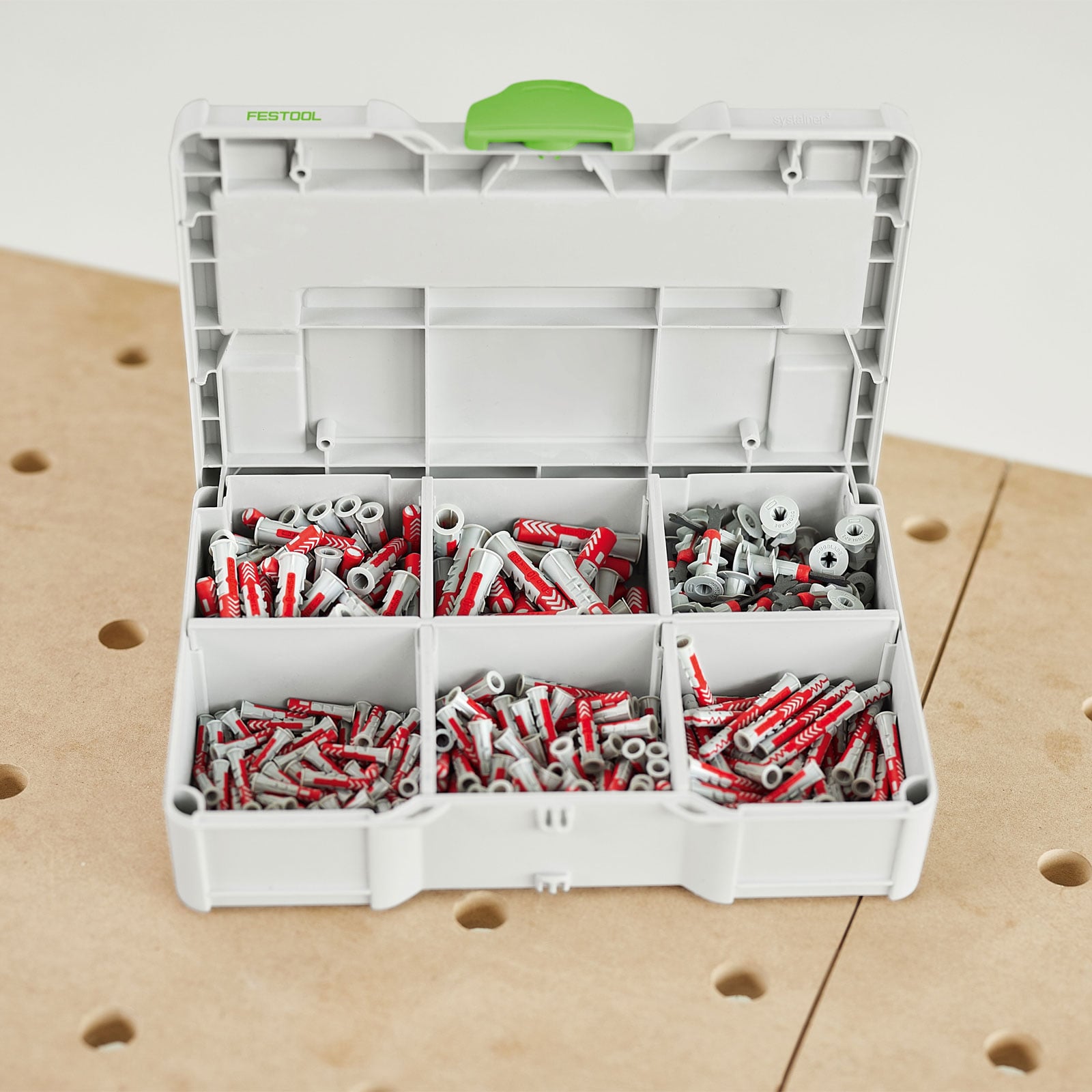 - Mit dem Dübel-Set im Systainer³ S seid ihr bestens vorbereitet für verschiedenste Anwendungen in allen Baustoffen. Das Set besteht aus hochwertigen DuoPower Dübeln in den Durchmessern 5, 6, 8 und 10 sowie Gipskartondübel 6 x 35 - alles ordentlich verstaut und sicher aufbewahrt im handlichen Mini-Systainer³ S 76. Und auch noch mobil: Mit dem Systainer³ Rack kann euer Zubehör-Systainer auch in die bott vario3 Fahrzeugeinrichtung integriert werden.