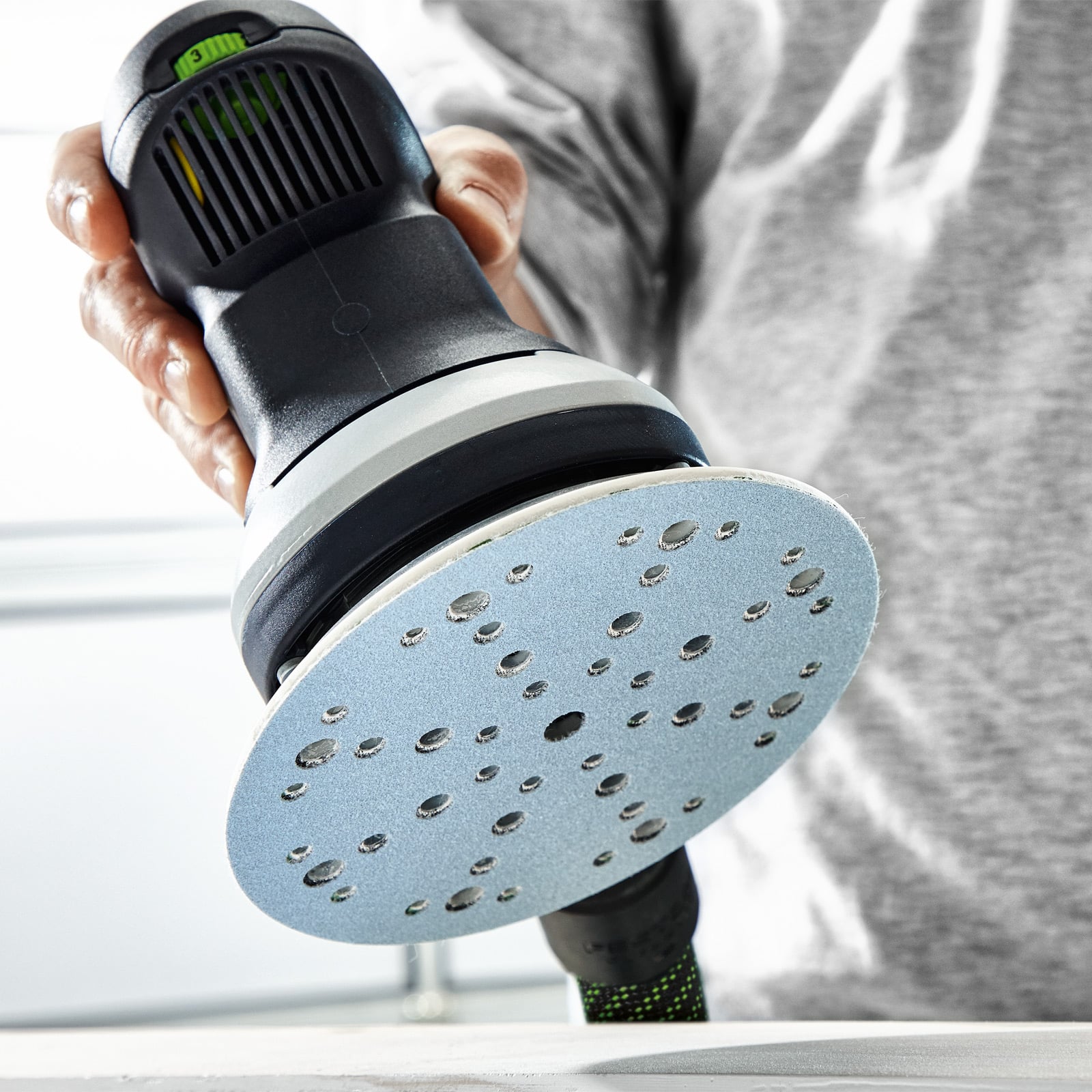 Starker Abtrag bei maximaler Absaugung. Der patentierte MULTI-JETSTREAM 2 Teller garantiert durch sein einzigartiges Funktions-Prinzip deutlich verbesserte Schleifergebnisse bei gleichzeitigen Zeit- und Kostenvorteilen. MULTI-JETSTREAM 2 definiert sich dabei über das optimale Zusammenspiel von Zu- und Abluft – mit optimaler Stauberfassung bis in den Randbereich. Das Ergebnis: Nahezu 100% Absaugung für gleichbleibend hohen Schleifabtrag, höchste Oberflächengüte und gesundes Arbeiten.