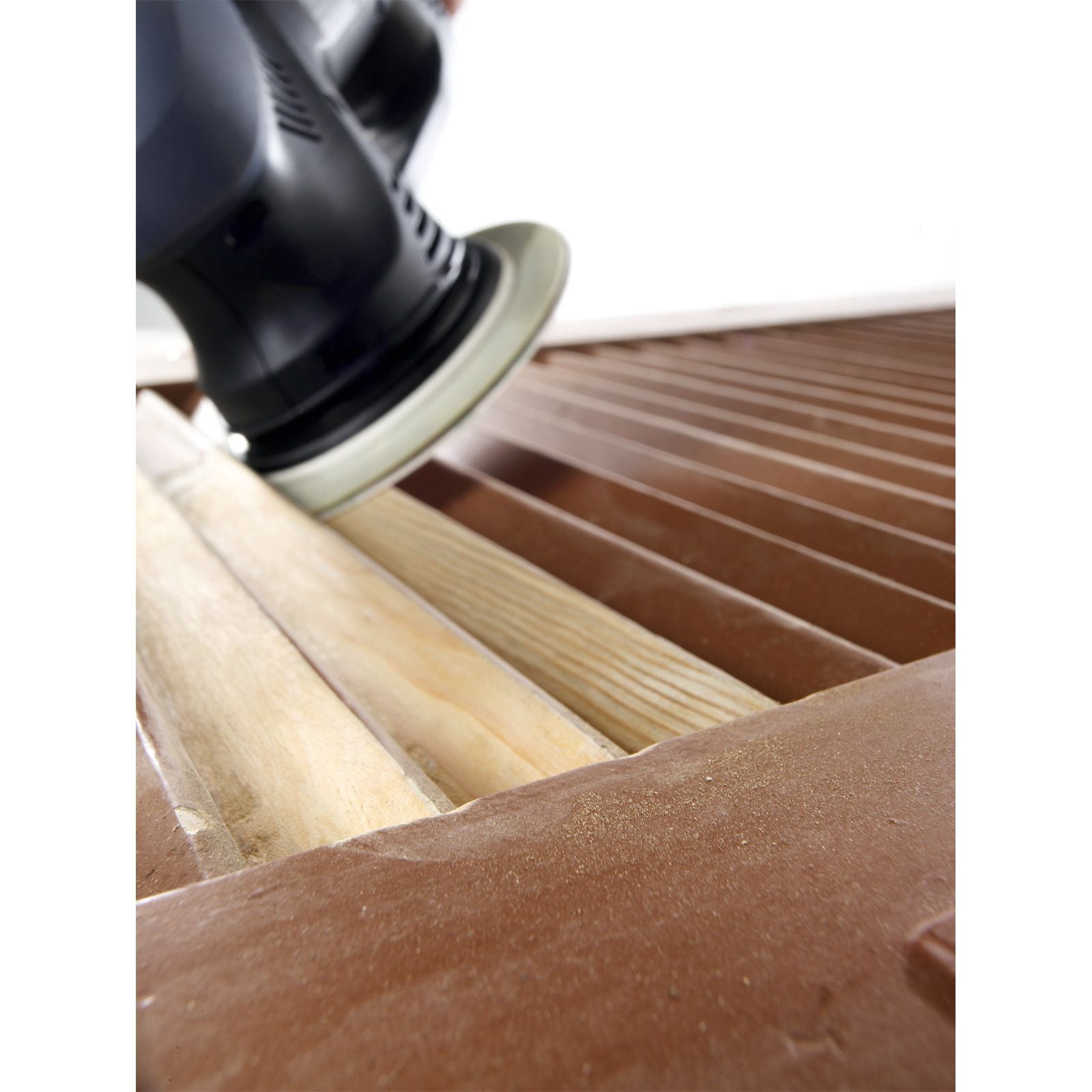 - Bis zu dreifach stärkerer Abtrag als herkömmliche Exzenterschleifer durch durchzugsstarken Motor und die Kombination von Exzenter- und Rotationsbewegung.