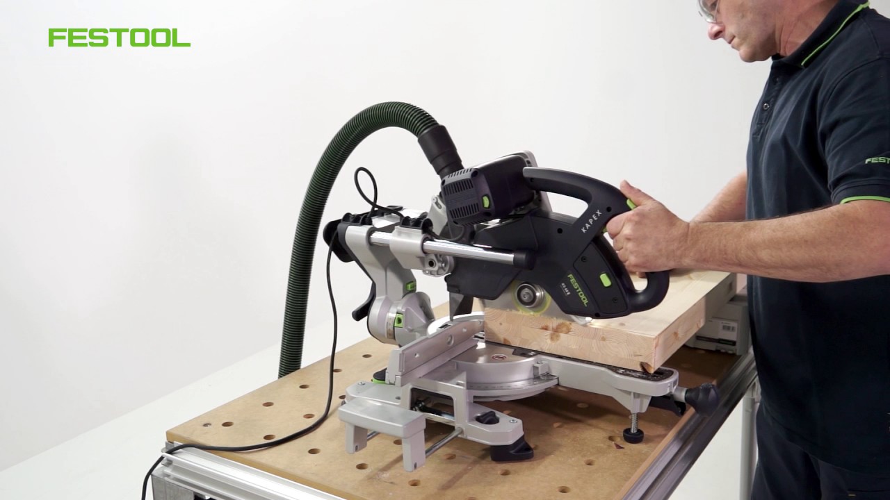 - Für saubere Luft und gesunde Arbeitsumgebung: Die Absaugeinrichtung saugt in Kombination mit einem Festool Absaugmobil den Staub dort ab, wo er entsteht