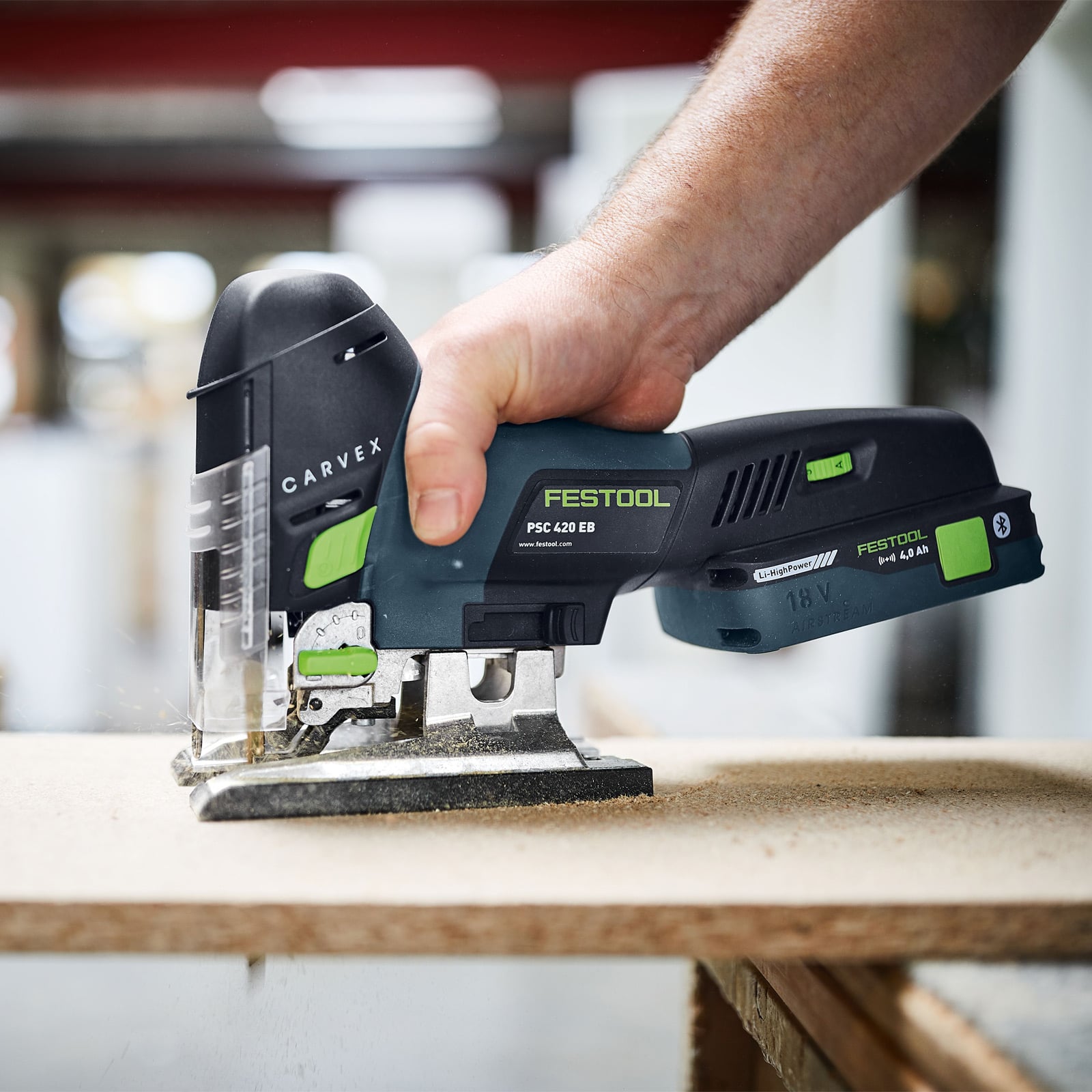 - Zweimal 18 Volt. Zweimal Leistung wie aus der Steckdose. Zweimal mit bürstenlosem, energieeffizientem und langlebigem EC-TEC-Motor: Akku-Bohrschrauber T 18+3 – das Kraftwerk mit dem entscheidenden Plus an Wirkungsgrad und beeindruckend mehr Drehmoment. Und die Akku-Pendelstichsäge CARVEX PSC 420 – kraftvoller Durchzug und müheloses Kurvenhandling in konzentrierter und handlicher Bauform. Für einen besonders komfortablen Einsatz der CARVEX PSC 420 mit dem Festool Absaugmobil sorgen die Festool Bluetooth® Akkupacks: Sie sorgen in Kombination mit einem Bluetooth®-fähigen Festool Absaugmobil dafür, dass der Sauger im AUTO-Modus automatisch startet, wenn die Akku-Pendelstichsäge eingeschaltet wird.