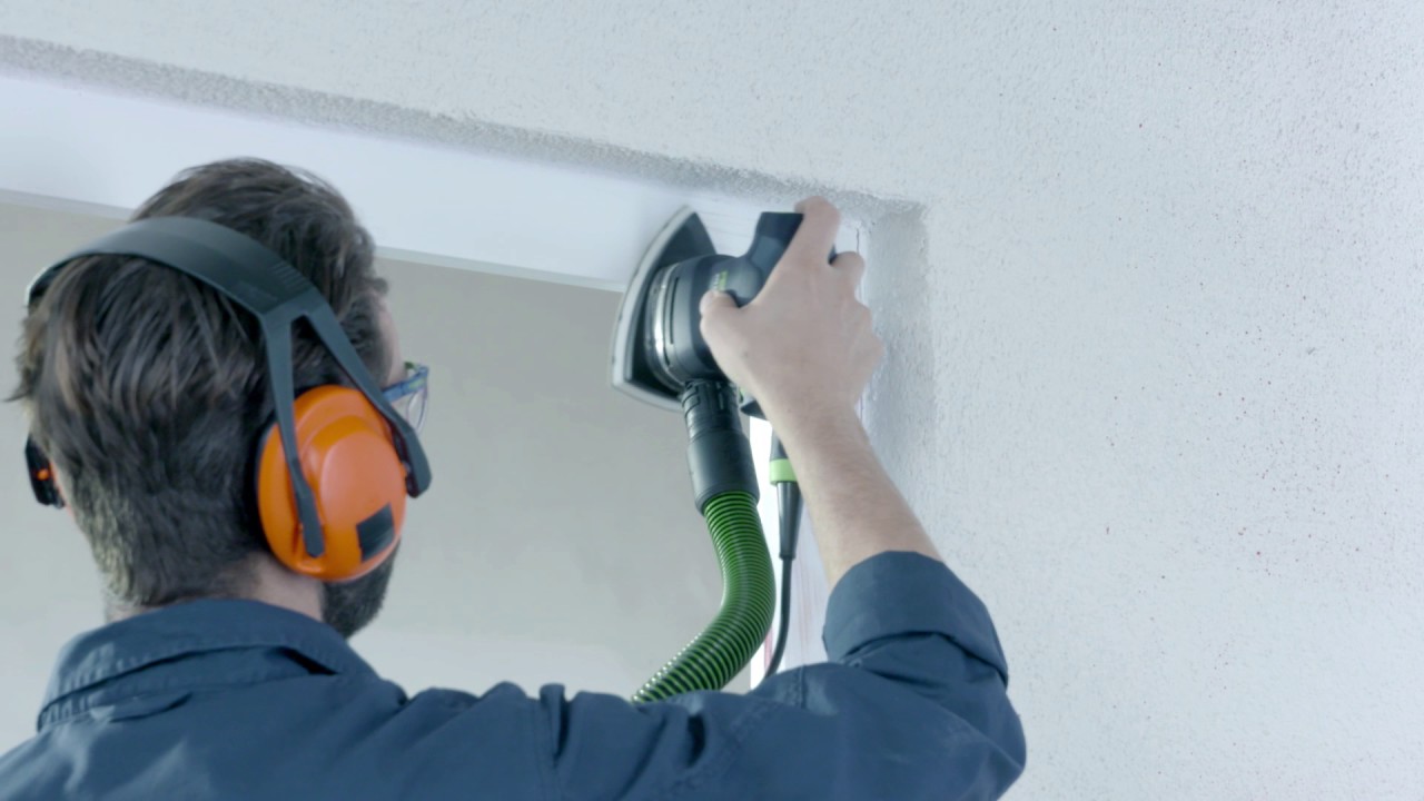 - Gesund und weniger Nacharbeit: In Kombination mit Absaugmobil oder Longlife-Staubfangbeutel und aufsteckbarem PROTECTOR für schonendes Schleifen entlang von Fensterflächen, Rahmen und Füllungen.