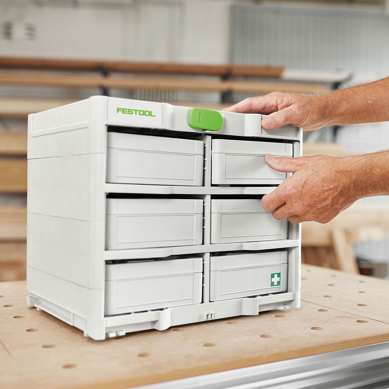 - Griffbereit: Der Inhalt ist auch im gestapelten Systainer-Turm jederzeit zugänglich