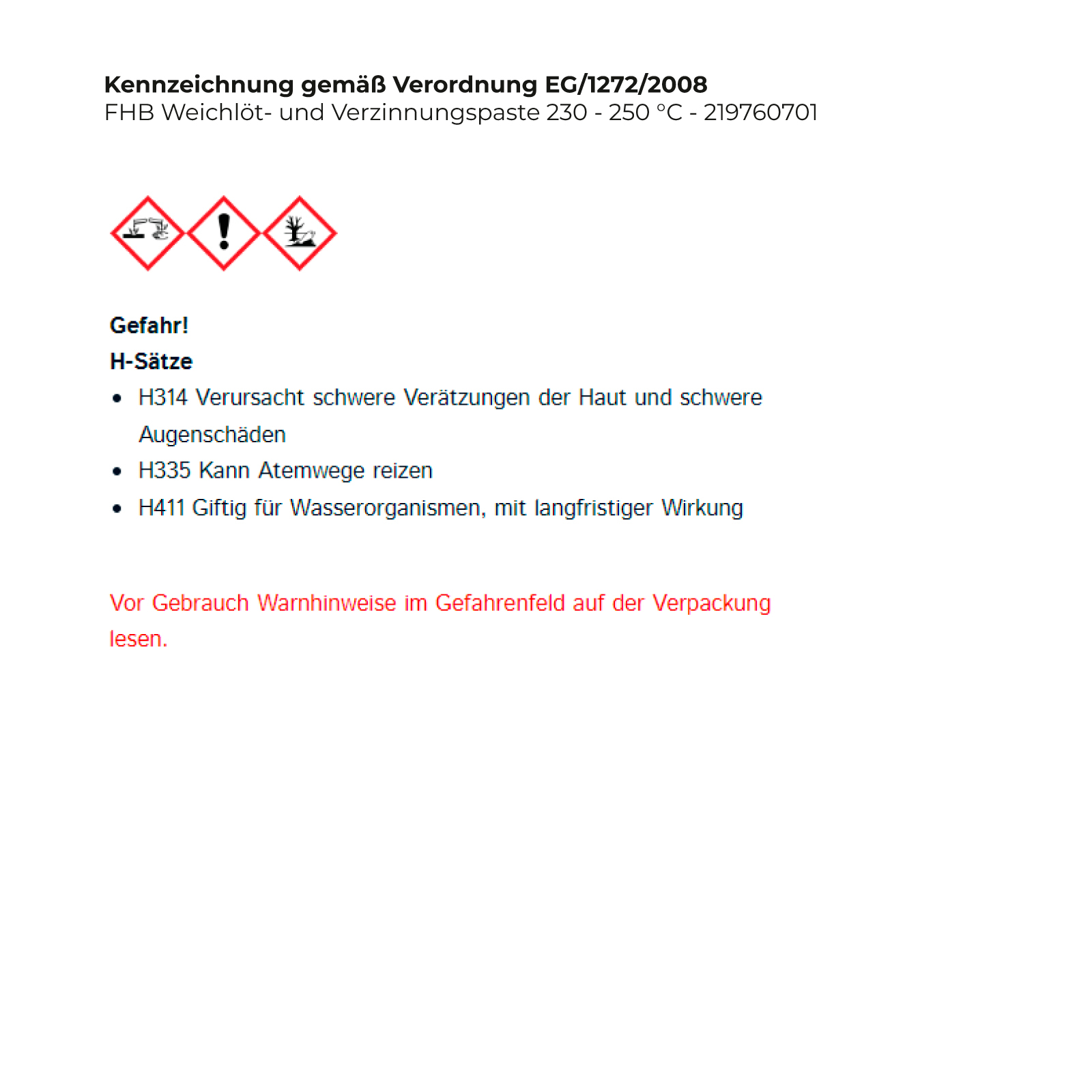 - H314 Verursacht schwere Verätzungen der Haut und schwere Augenschäden