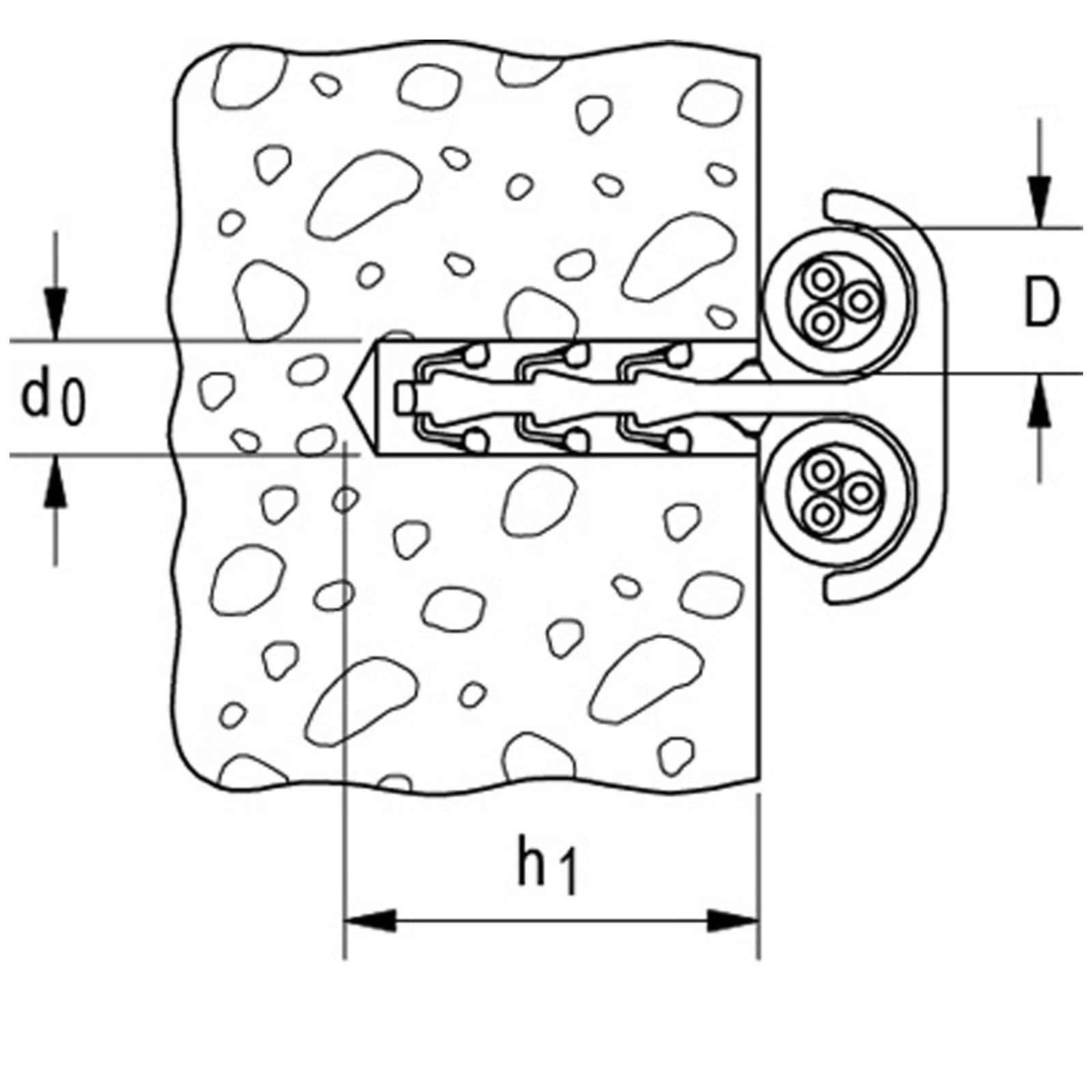 - Der Steckdübel wird ohne zusätzliche Schraube in das Bohrloch gesteckt und fixiert die Leitung direkt am Untergrund.