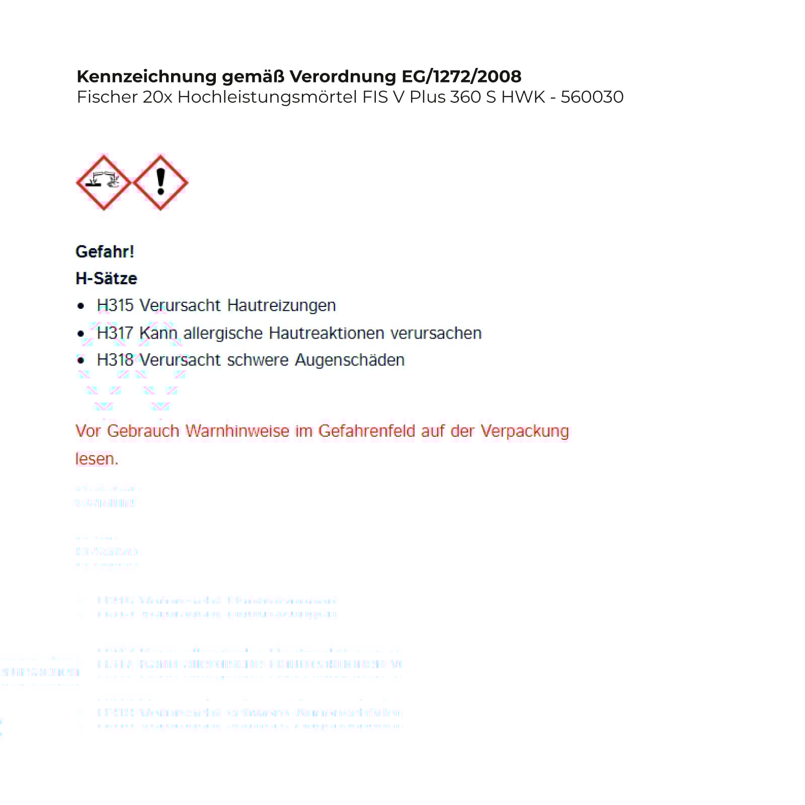 - H318 Verursacht schwere Augenschäden