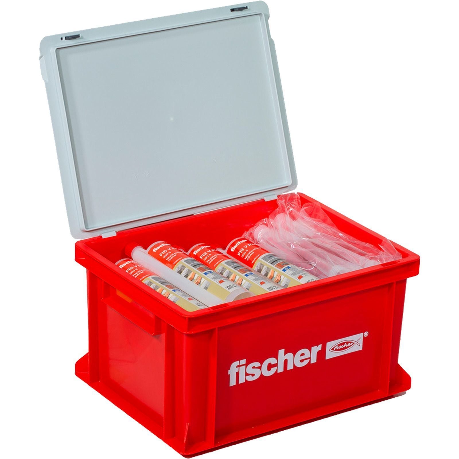 Sichern Sie sich jetzt den Handwerkerkoffer mit 20 Kartuschen Hochleistungsmörtel FIS V Plus 360 S und 40 Statikmischer. Der fischer Hochleistungsmörtel FIS V Plus 360 S ist der universelle Alleskönner für höchste Anforderungen. Der styrolfreie Vinylester-Hybridmörtel ist das weltweit erste System, das für Befestigungen in Lochstein, Vollstein, Beton und Porenbeton zugelassen ist. Das Injektionsmörtel-System punktet zudem mit zugelassenen Systemkomponenten wie Ankerstangen, Innengewindeankern und Injektions-Ankerhülsen für Befestigungen in Beton, Porenbeton und Mauerwerk im Innen- und Außenbereich. Der fischer Hochleistungsmörtel FIS V Plus 360 S wird aber auch mit den zugelassenen Systemkomponenten für Bewehrungsanschlüsse, den fischer Verblendsanierankern VBS 8 und den fischer Wetterschalenankern FWS sowie dem Abstandsmontagesystem TherMax verwendet.