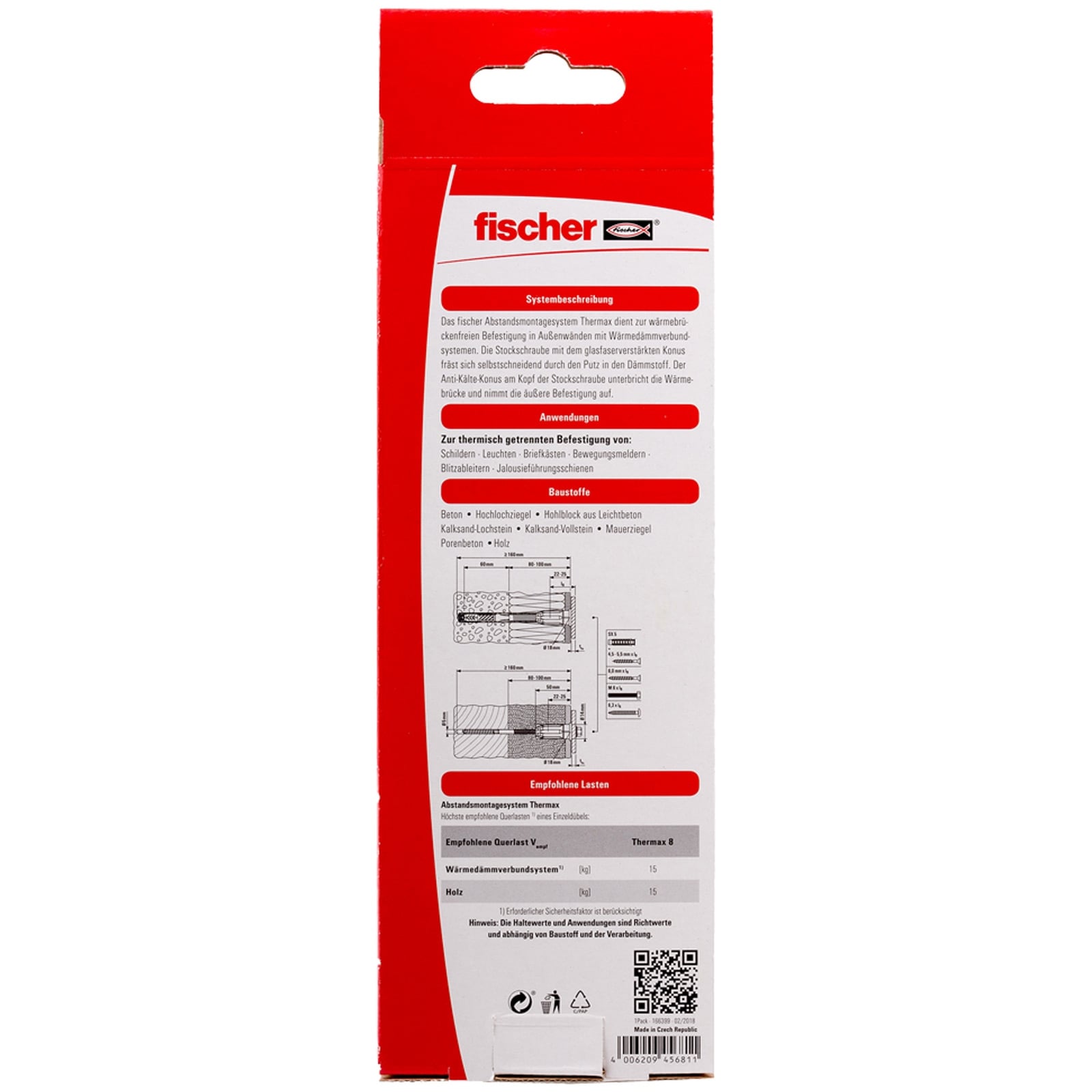 Der Thermax befestigt leichte Lasten wie Leuchten, Briefkästen oder Blitzableiter in Beton, Porenbeton und Mauerwerk aus Loch- und Vollstein.