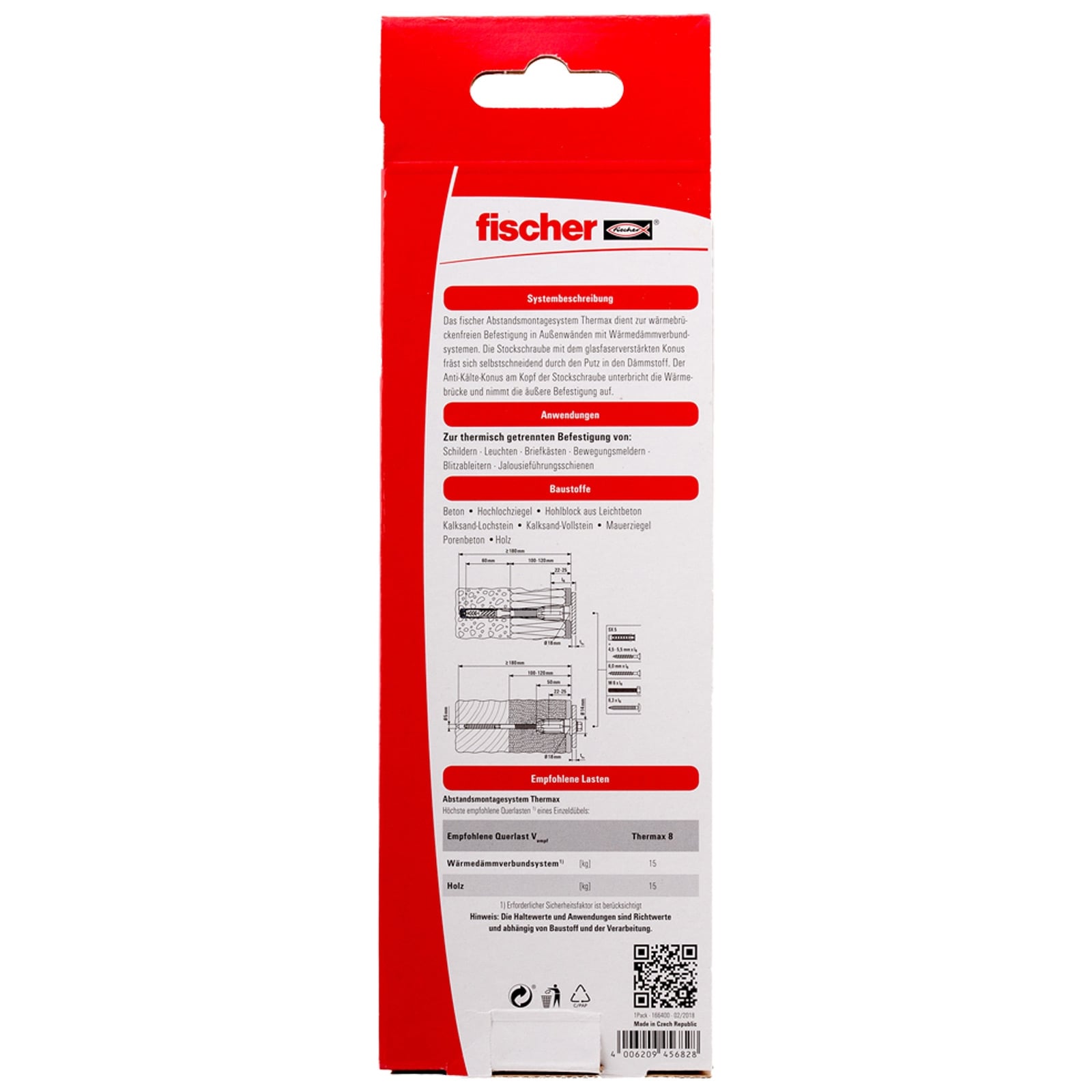 Der Thermax befestigt leichte Lasten wie Leuchten, Briefkästen oder Blitzableiter in Beton, Porenbeton und Mauerwerk aus Loch- und Vollstein