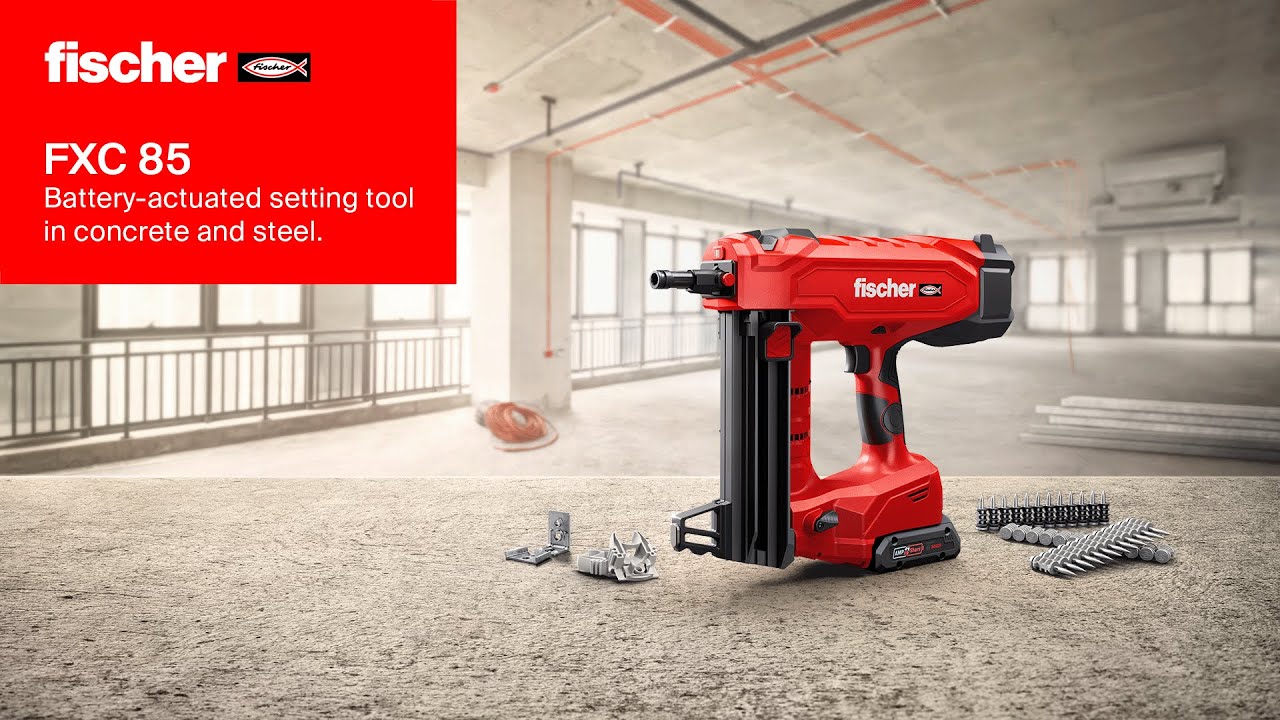 - Das FXC 85 eignet sich für die schnelle und zuverlässige Installation von z. B. Trockenbauschienen und Elektroinstallationen an Boden, Decke oder Wand aus Beton oder Stahl.