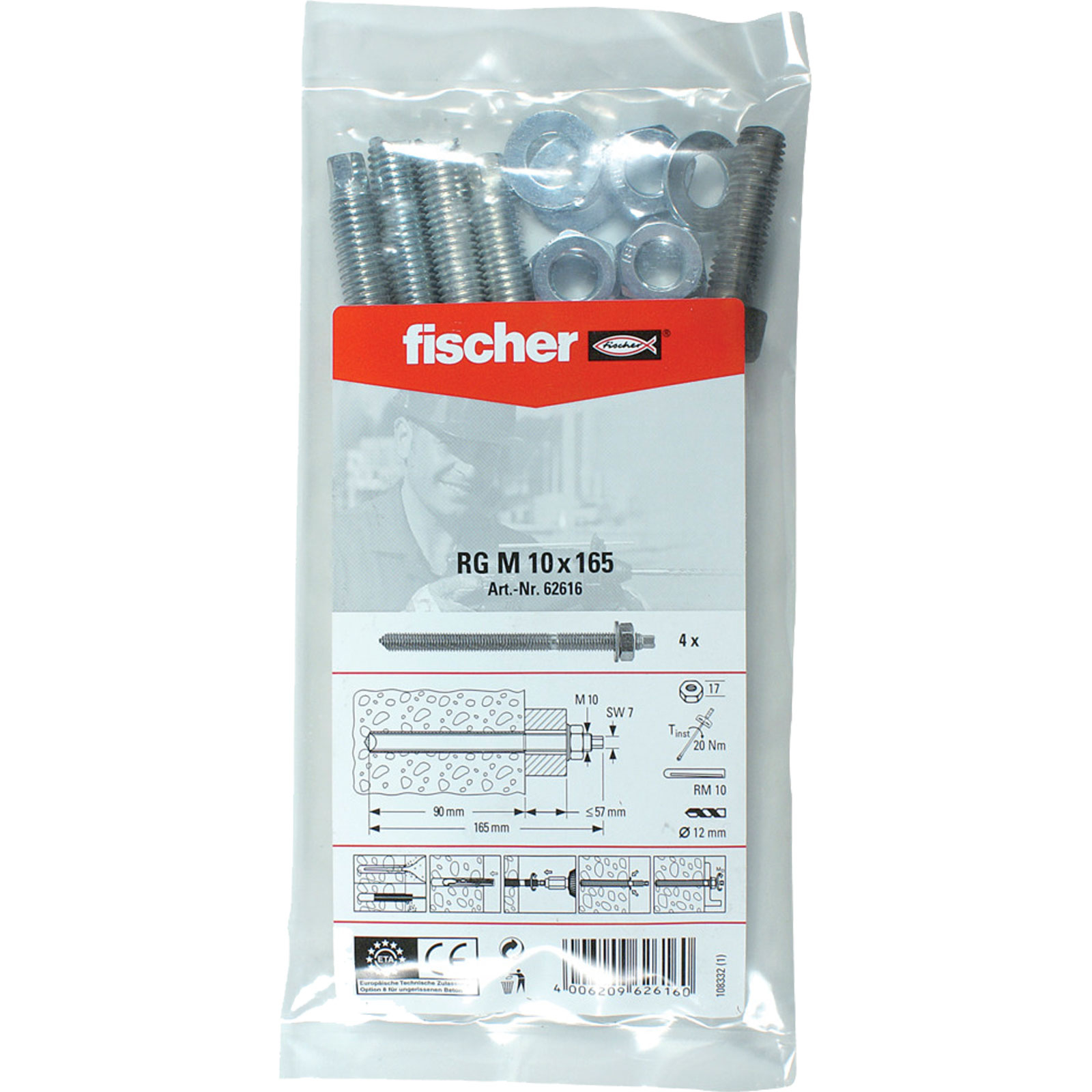 "Fischer 4x Ankerstange RG M 10 x 165 B Beutel - 062616"