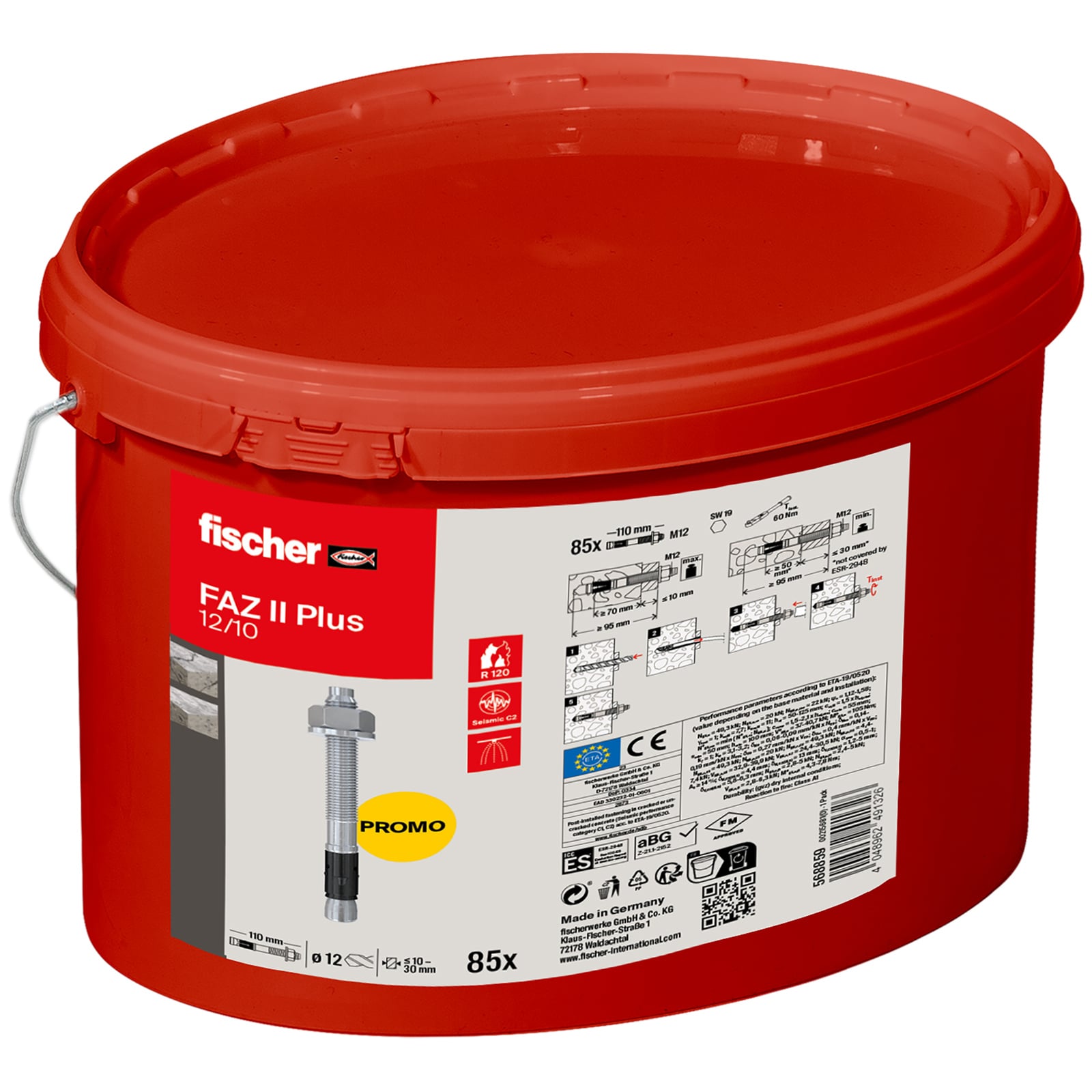 "Fischer Bolzenanker FAZ II Plus 12/10 im Eimer (85 St) - 568859"