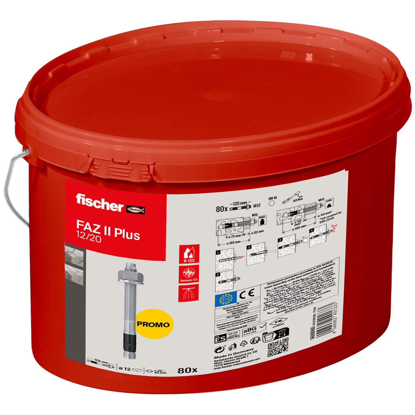 "Fischer Bolzenanker FAZ II Plus 12/20 im Eimer (80 St) - 568860"