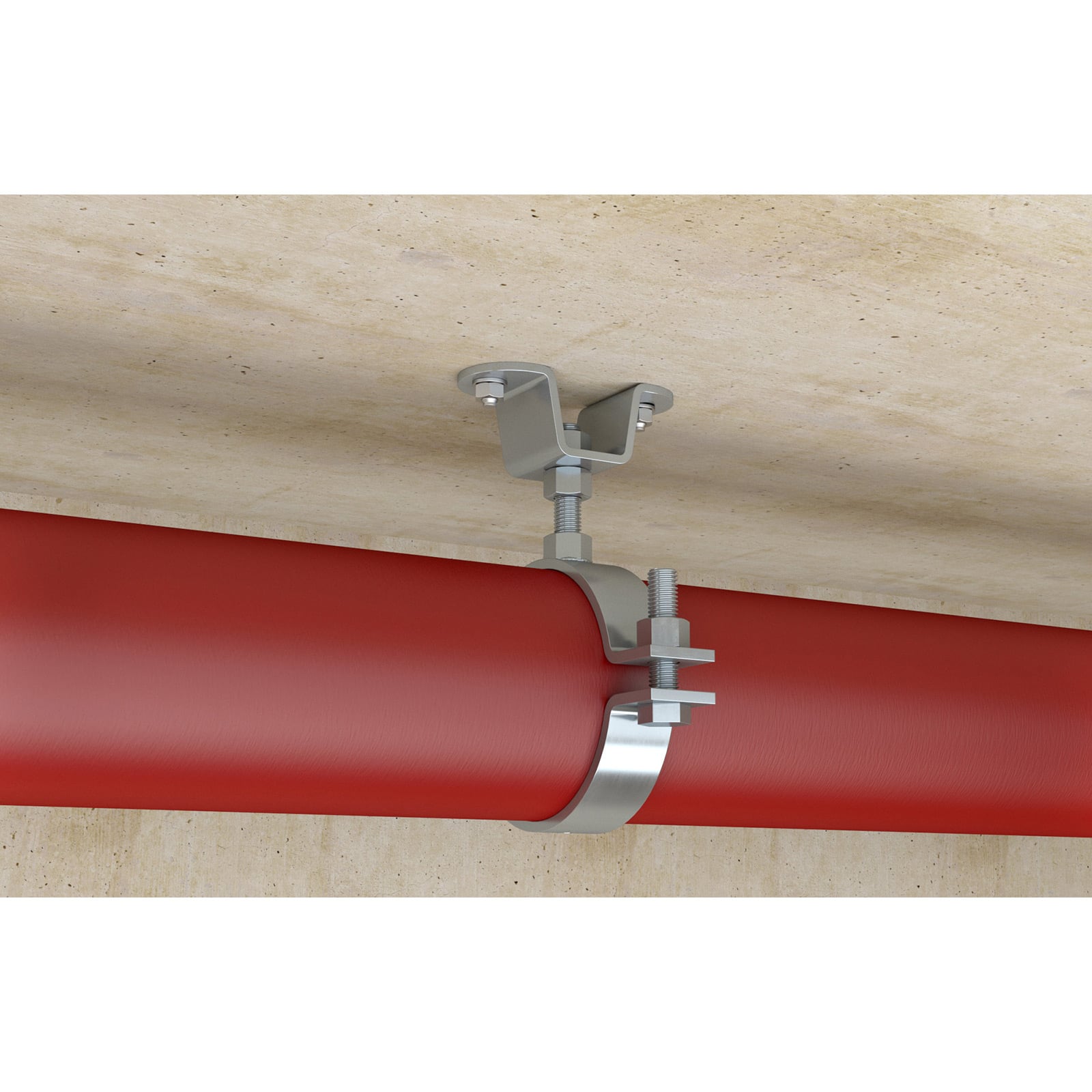 - Die kompakte Bauform des Festpunkts ermöglicht einen geringen Abstand zum Untergrund und gewährleistet die sichere Einleitung der auftretenden Kräfte in den Untergrund.