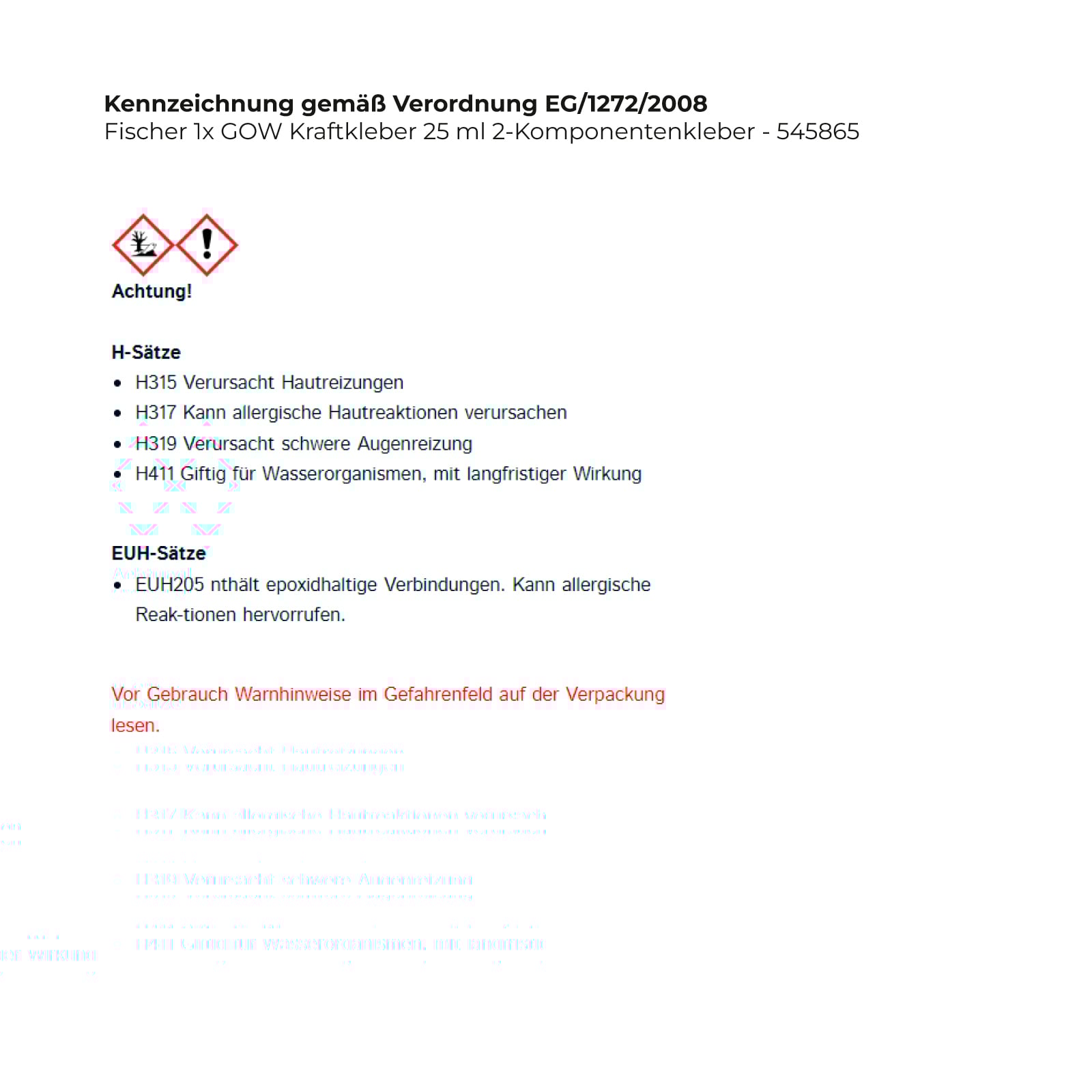 - 1x Fischer GOW Kraftkleber 25 ml 2-Komponentenkleber