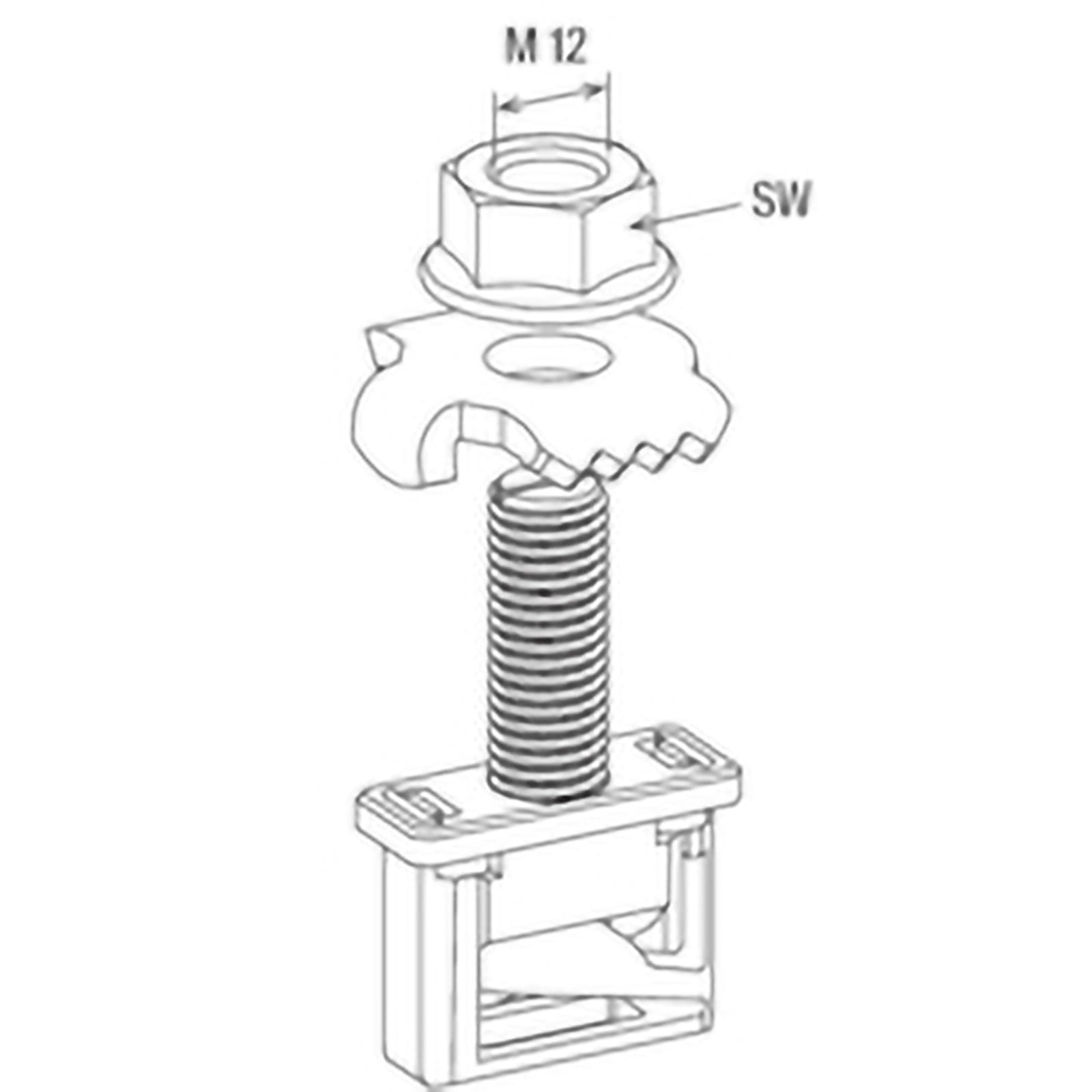 - Einsetzbar für dynamische Beanspruchung mit zusätzlicher Sicherungsmutter FMSB MU M12.